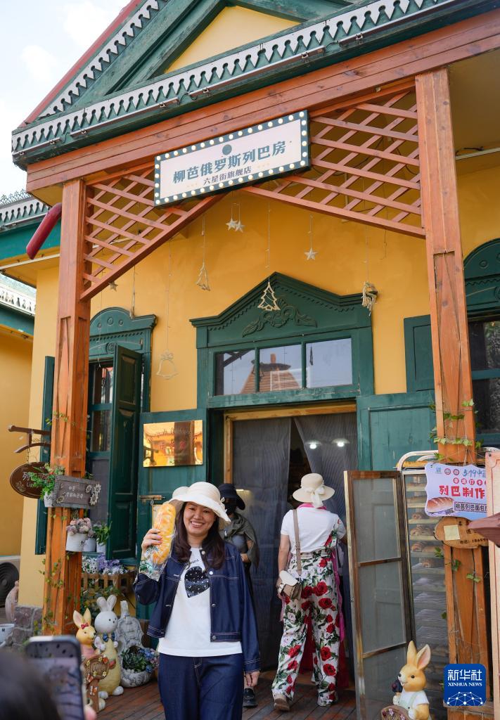 9月8日,游客在六星街一家面包店門(mén)前留影。