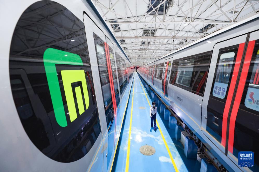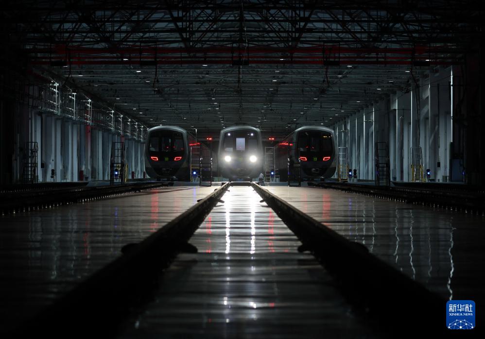 9月9日,地鐵列車在石家莊市地鐵西兆通車輛段整裝待發(fā)。