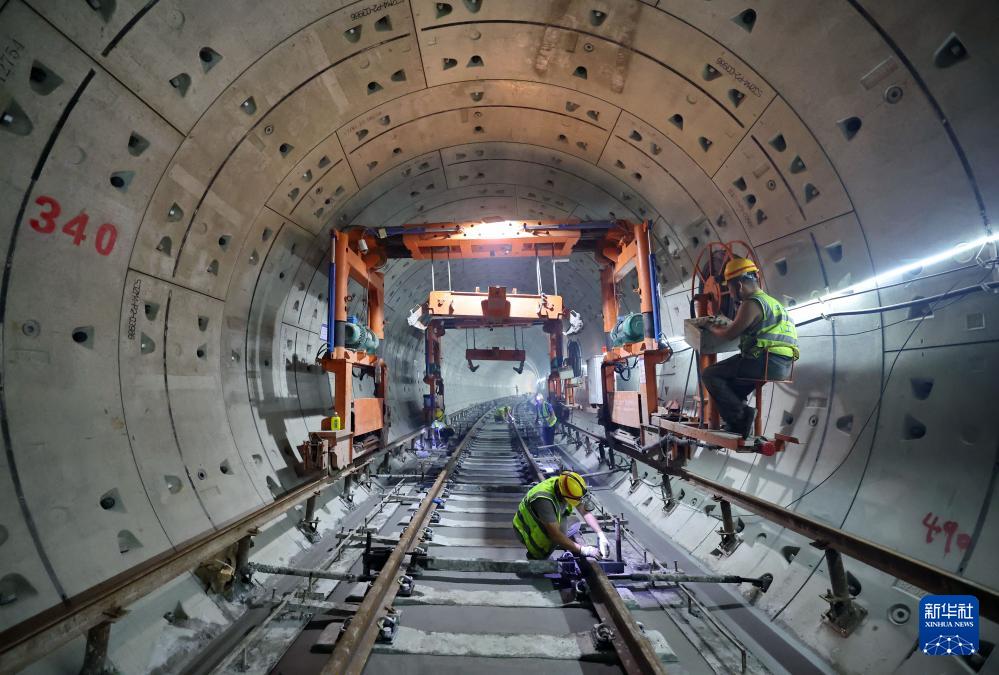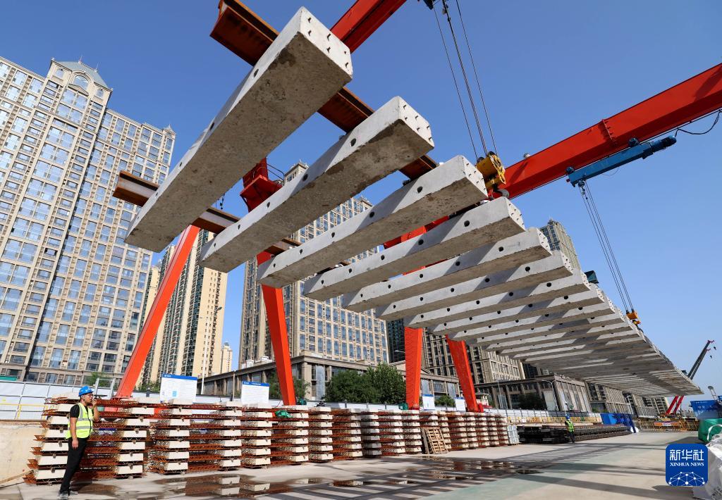 9月7日,工人在石家莊地鐵4號線一期工程建設(shè)工地施工。