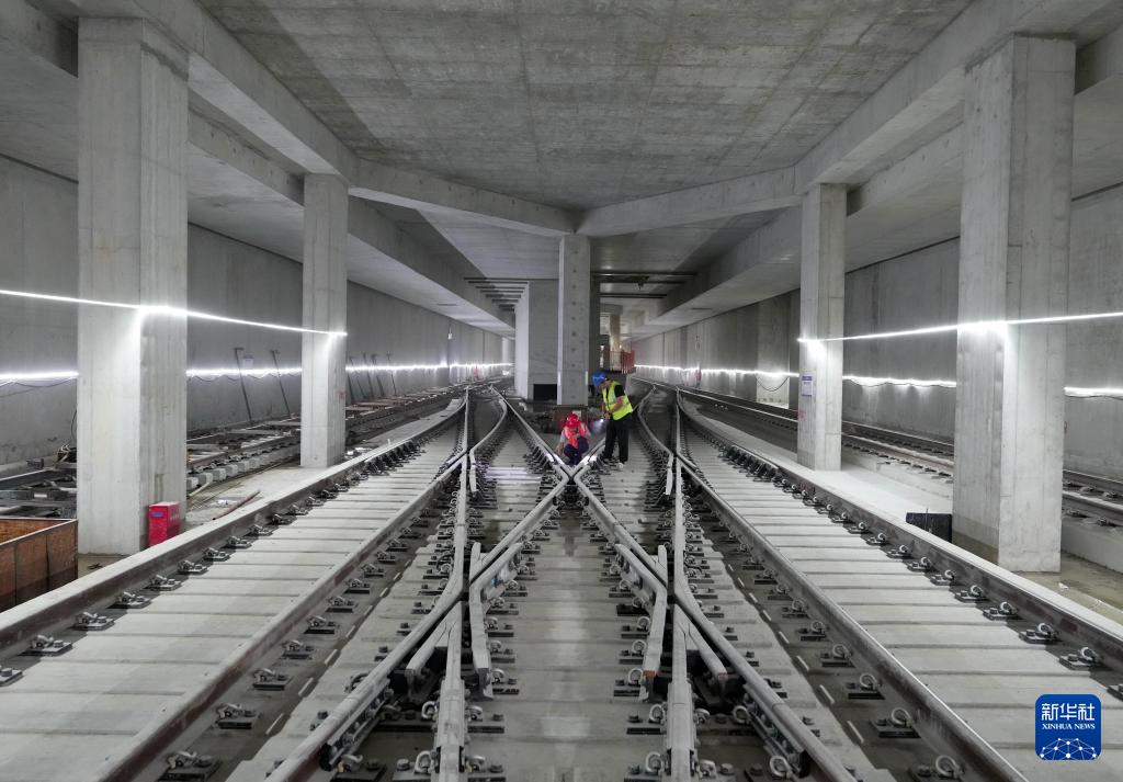 9月9日,工人在石家莊地鐵4號線一期工程東垣東路站建設(shè)工地施工。