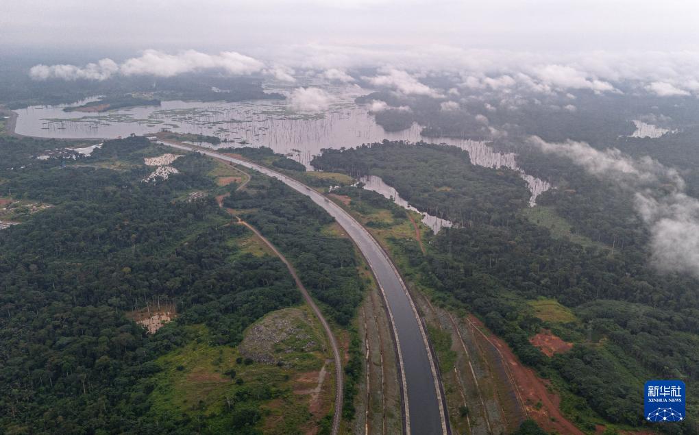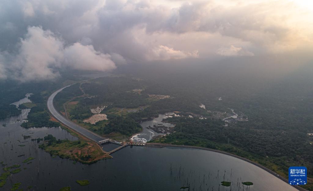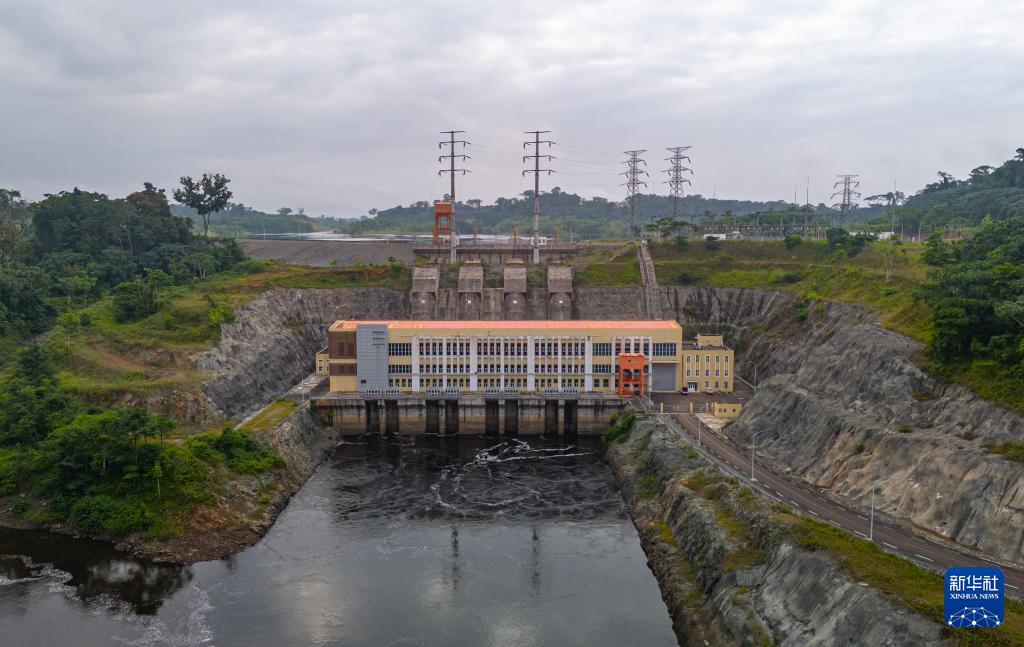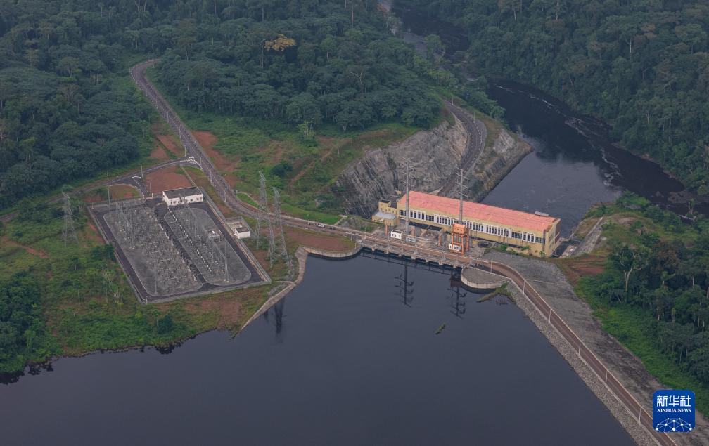 這是在喀麥隆南部大區(qū)拍攝的曼維萊水電站(無人機(jī)照片,6月29日攝)。