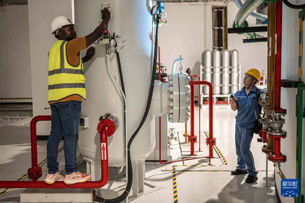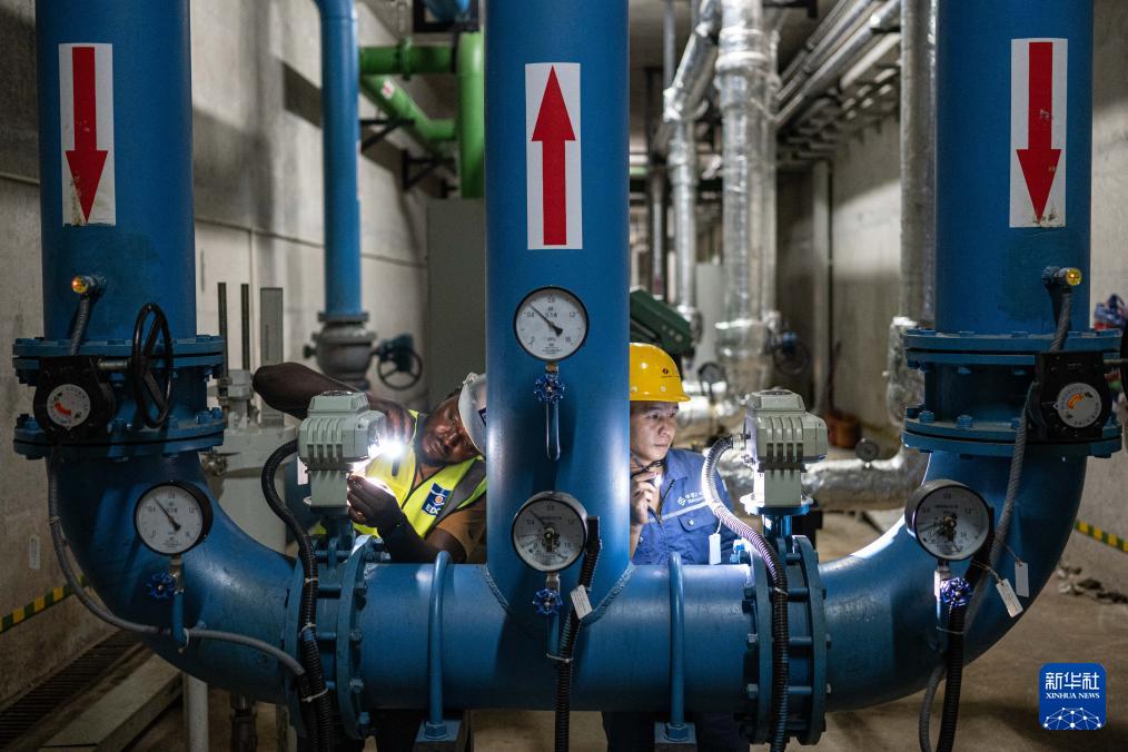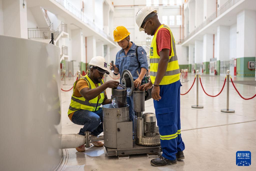 在喀麥隆南部大區(qū)的曼維萊水電站,工程師們檢查機(jī)組(6月30日攝)。