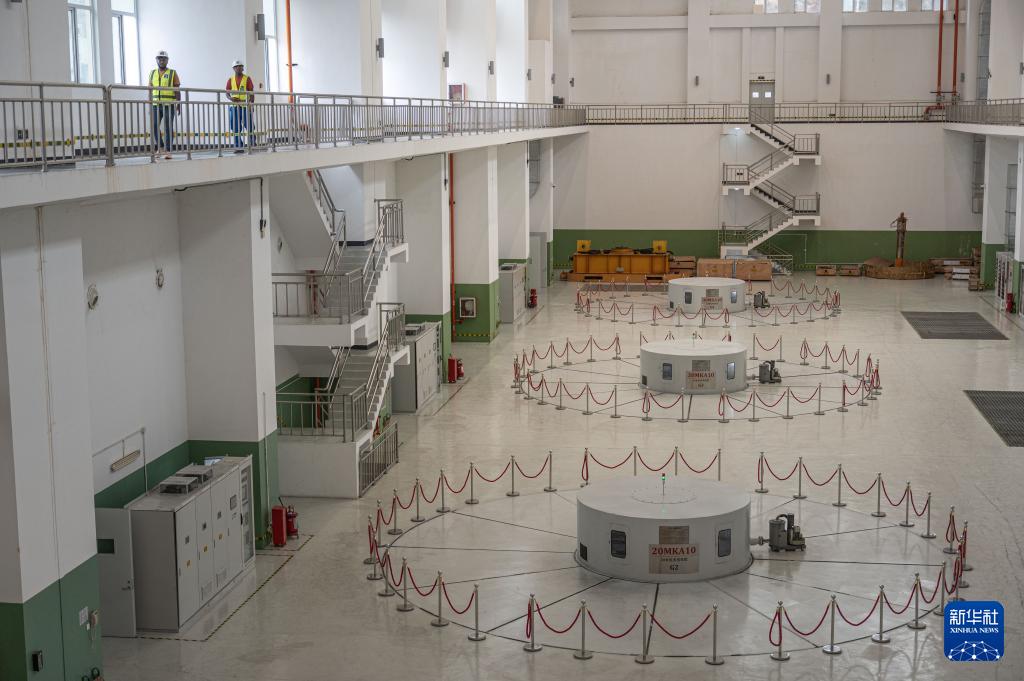 這是在喀麥隆南部大區(qū)拍攝的曼維萊水電站機(jī)房(6月30日攝)。
