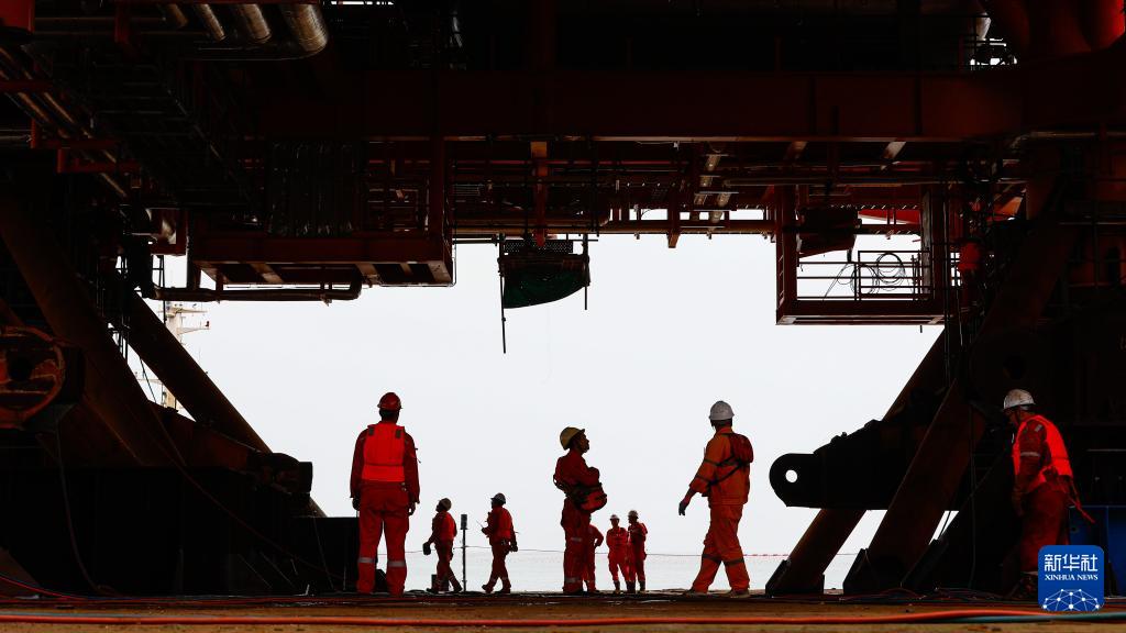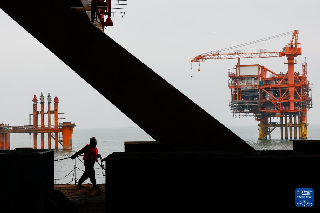 9月7日,工人穿梭在墾利6-1油田10-1北區(qū)塊Ⅱ期開發(fā)項(xiàng)目油氣平臺(tái)安裝作業(yè)現(xiàn)場(chǎng)。