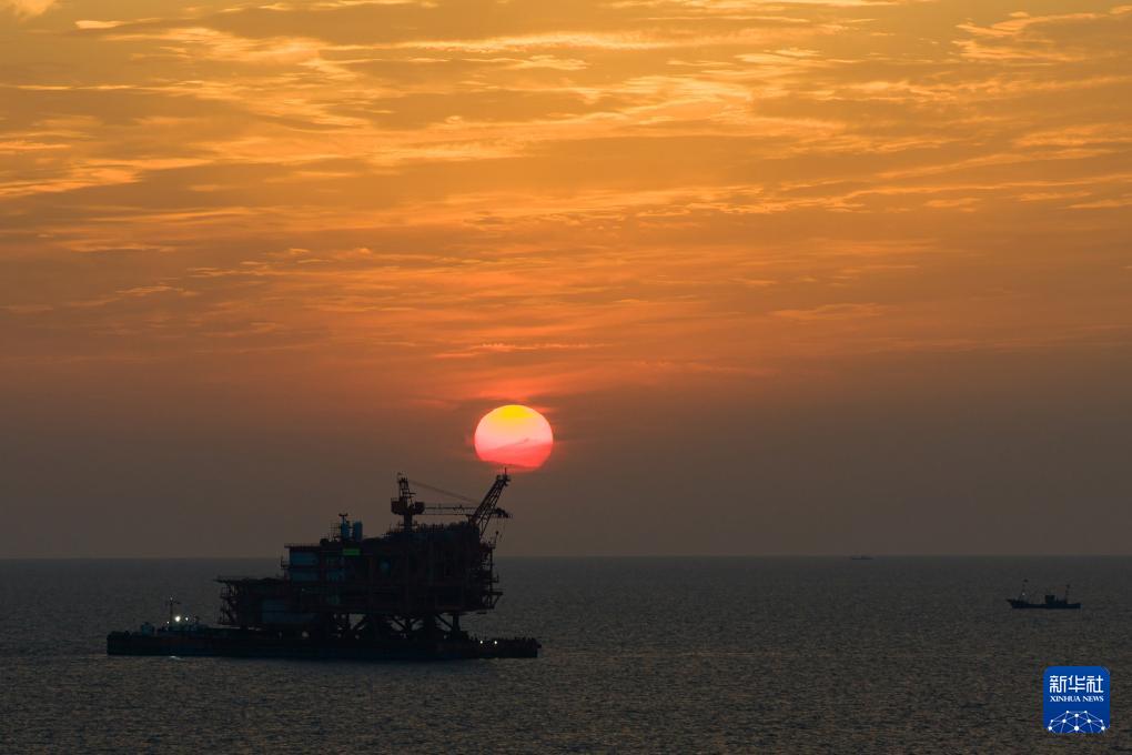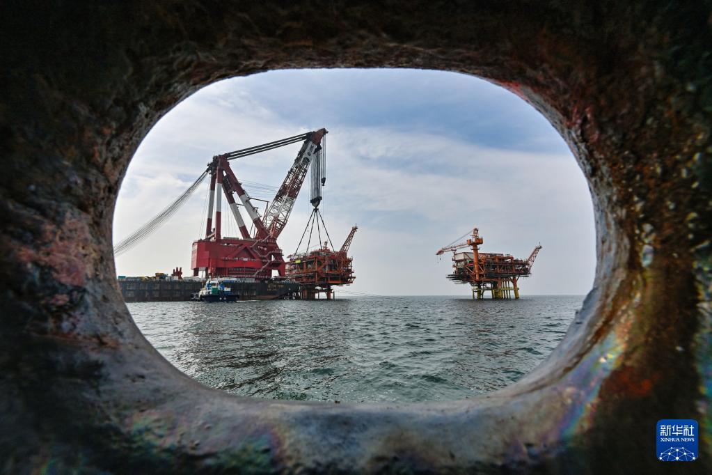 這是9月8日在渤海海域拍攝的墾利6-1油田10-1北區(qū)塊Ⅱ期開發(fā)項(xiàng)目油氣平臺(tái)安裝作業(yè)現(xiàn)場(chǎng)(無人機(jī)照片)。
