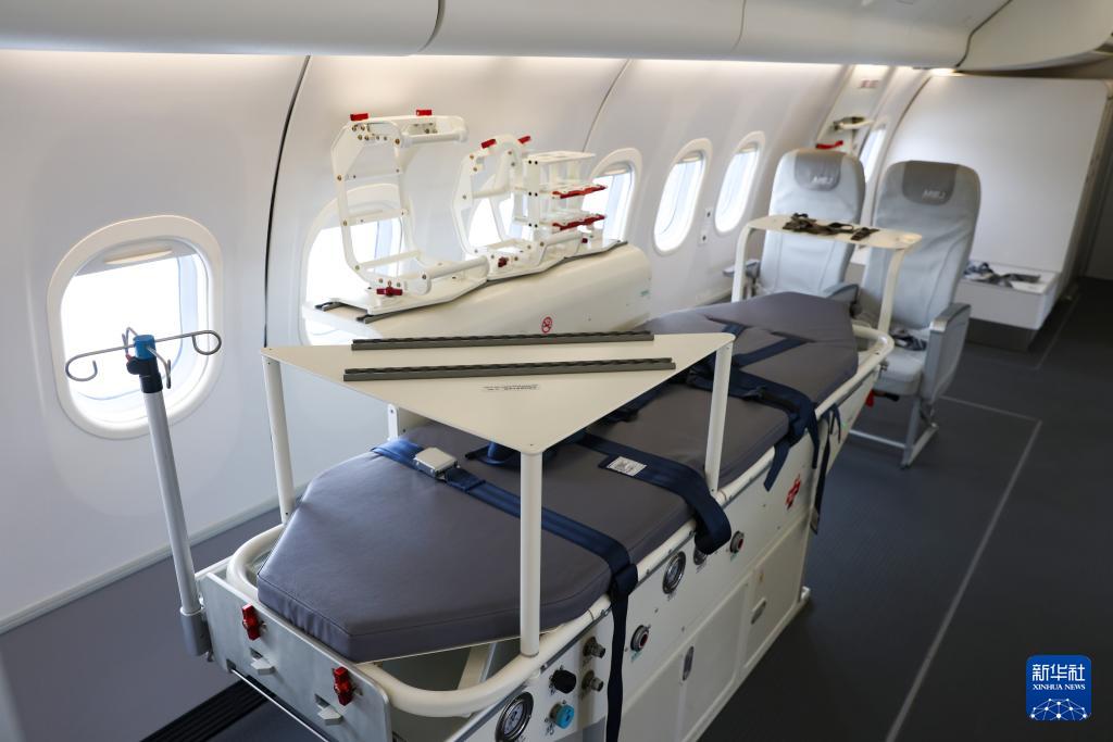 據悉,C909醫(yī)療機最大設計商載10噸,標準航程可達3700公里,具備高高原機場起降能力。艙內布局可根據不同救援需求靈活改裝,能夠滿足醫(yī)療救援隊伍出行、邊遠地區(qū)醫(yī)療救助、傷病員轉運等多場景應用。