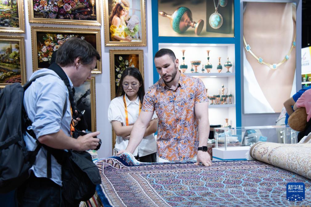 9月10日,參展者在2025年服貿(mào)會主題展秘魯展臺參觀、咨詢。