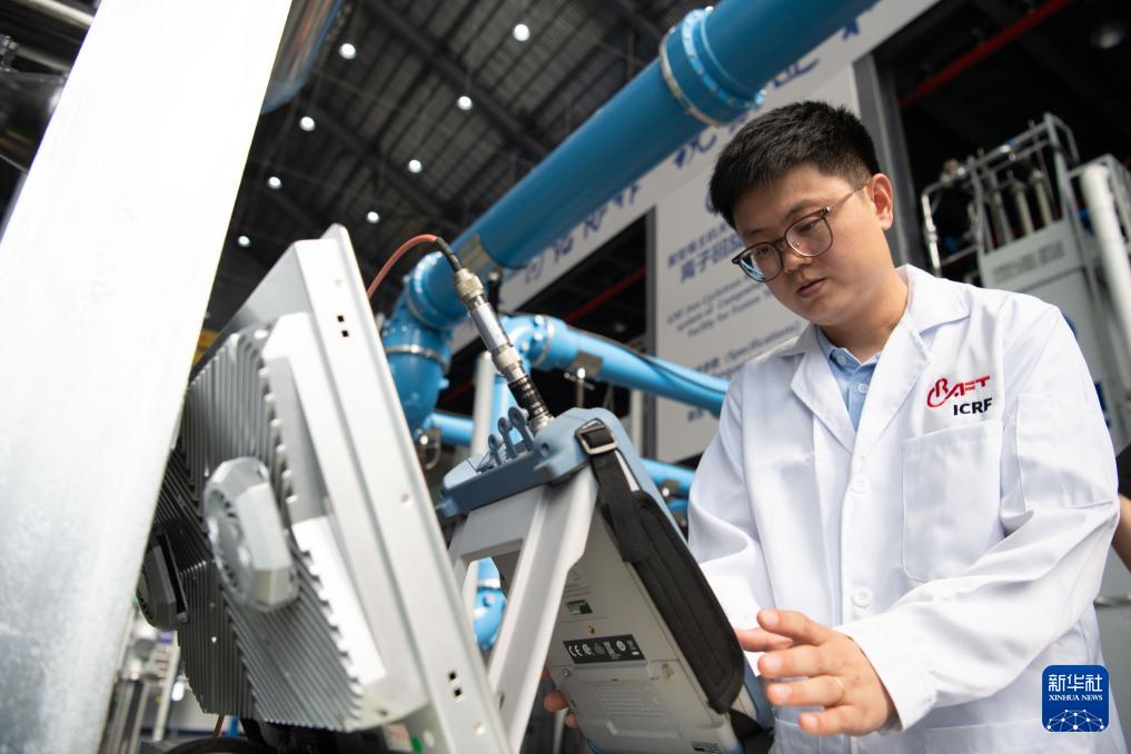 9月11日,在位于合肥市的聚變堆主機關(guān)鍵系統(tǒng)綜合研究設(shè)施園區(qū)內(nèi),科研人員在查看離子回旋加熱系統(tǒng)的運行狀態(tài)。