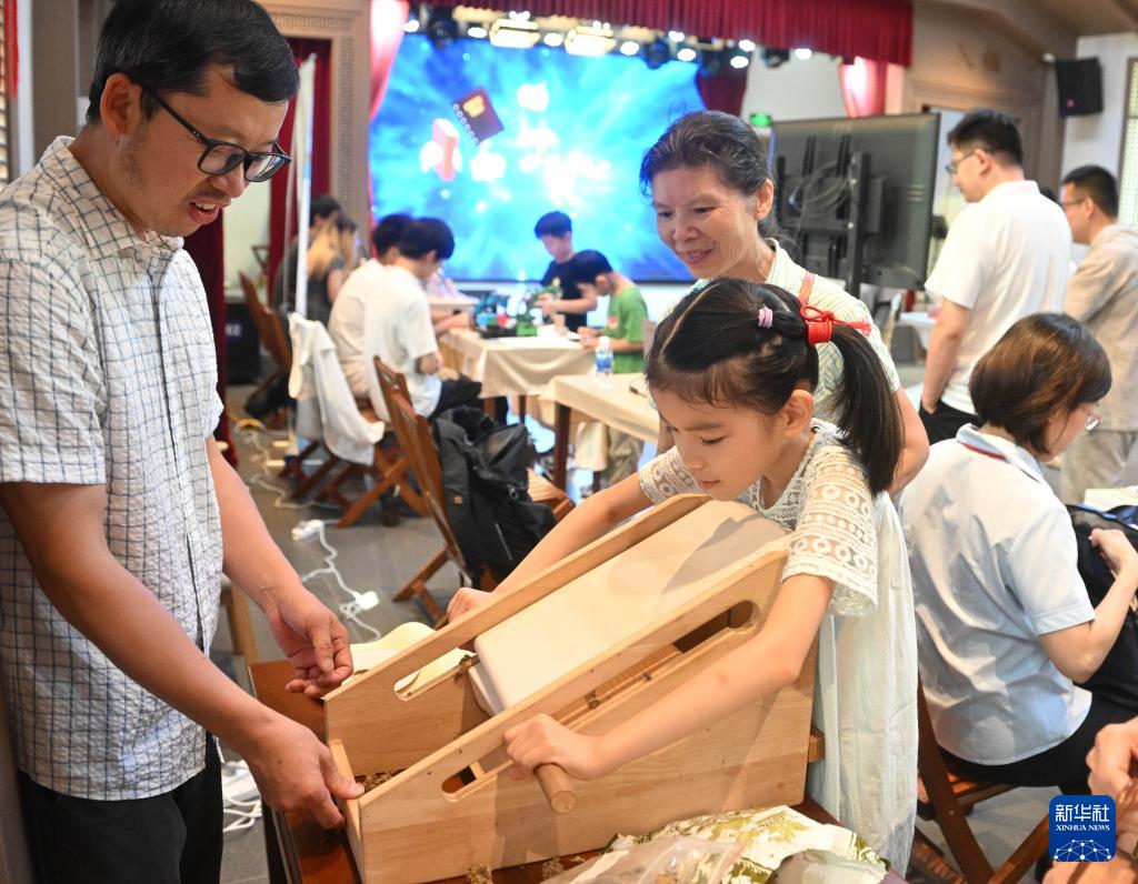 9月13日,小朋友在體驗中藥材傳統(tǒng)加工技藝。