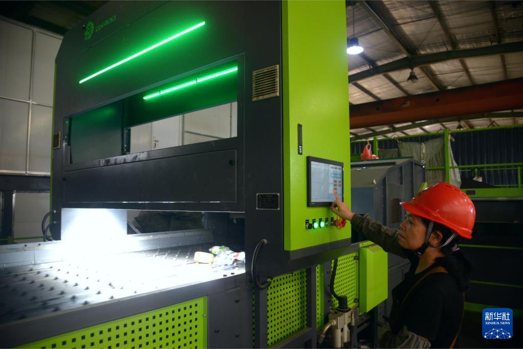 在位于福州馬尾區(qū)的福州城投再生資源分揀中心,工人操作智能光選機(jī)篩選塑料瓶等可回收垃圾(9月13日攝)。