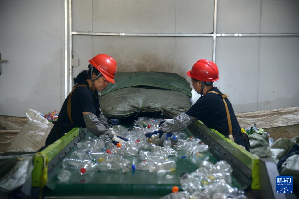 在位于福州馬尾區(qū)的福州城投再生資源分揀中心,工人整理智慧光選機(jī)篩選后的可回收垃圾(9月13日攝)。