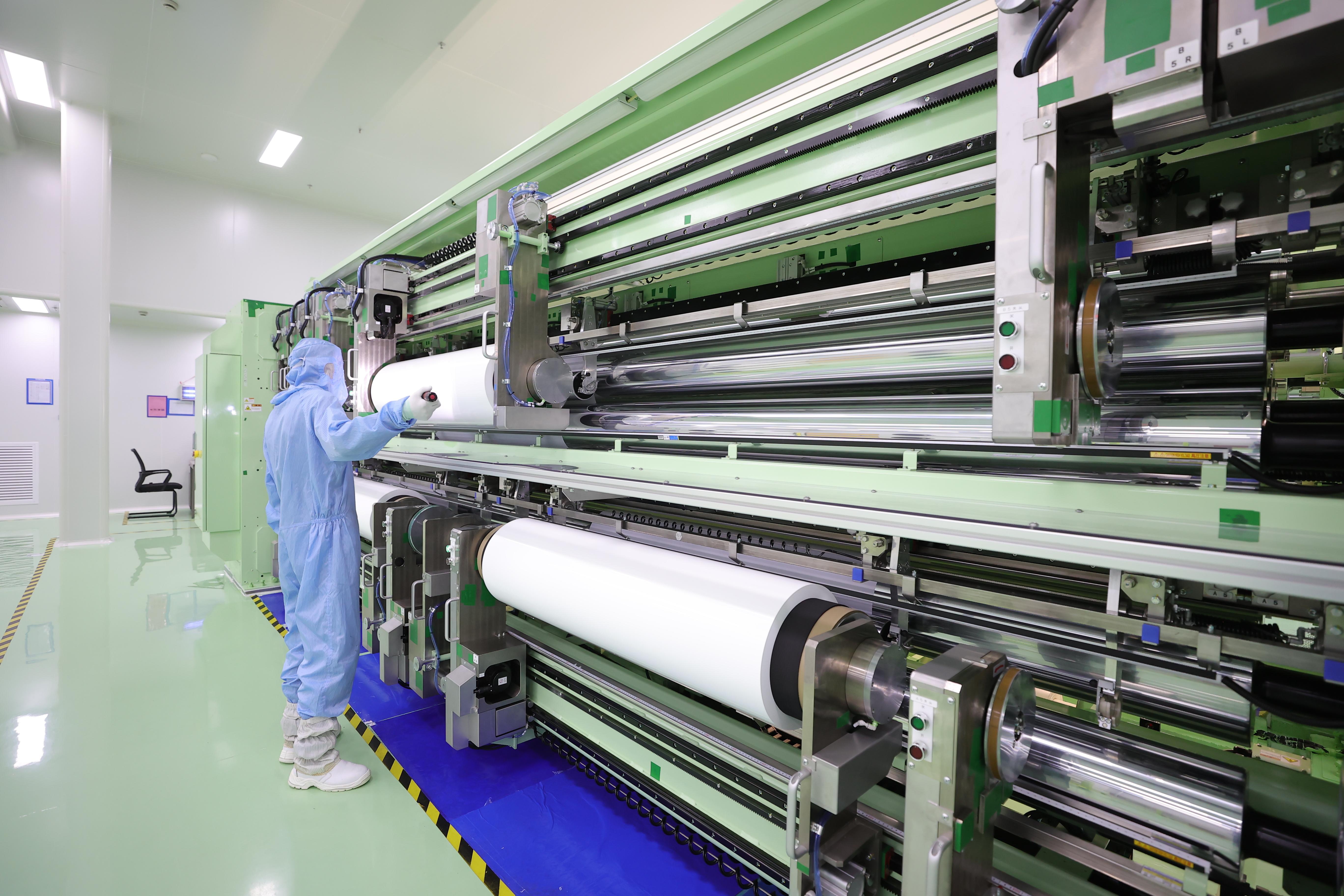 如銀色綢緞般成卷整齊碼放的高分子原料薄膜,在經(jīng)過(guò)預(yù)處理、數(shù)次雙向拉伸、熱定型等多道工序后,蛻變?yōu)楸∪缦s翼的鋰電池薄膜。這是記者近日在云南恩捷新材料股份有限公司(以下簡(jiǎn)稱恩捷股份)旗下玉溪恩捷5μm鋰電池薄膜生產(chǎn)線看到的一幕。