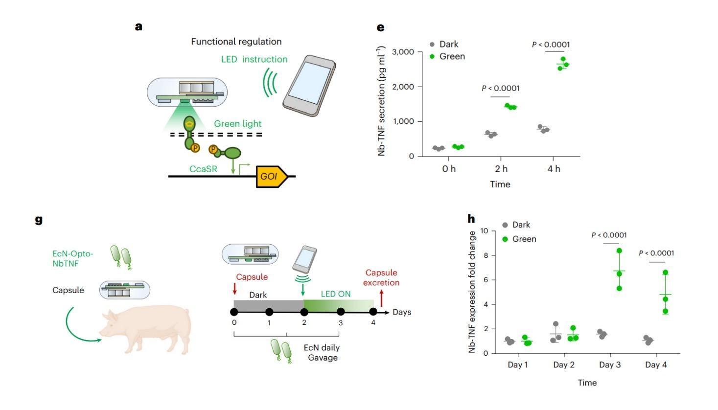 7月30日,記者從天津大學(xué)獲悉,該校王漢杰、劉奪團(tuán)隊(duì)與西北農(nóng)林科技大學(xué)杜濤峰團(tuán)隊(duì)合作,在國(guó)際期刊《自然·微生物學(xué)》發(fā)表一項(xiàng)突破性成果,成功構(gòu)建“可吞服光電子膠囊-工程菌雙向交流系統(tǒng)”,建立起人類(lèi)與腸道工程菌之間的光學(xué)“語(yǔ)言”,為腸道健康監(jiān)測(cè)與疾病治療開(kāi)辟了新路徑。