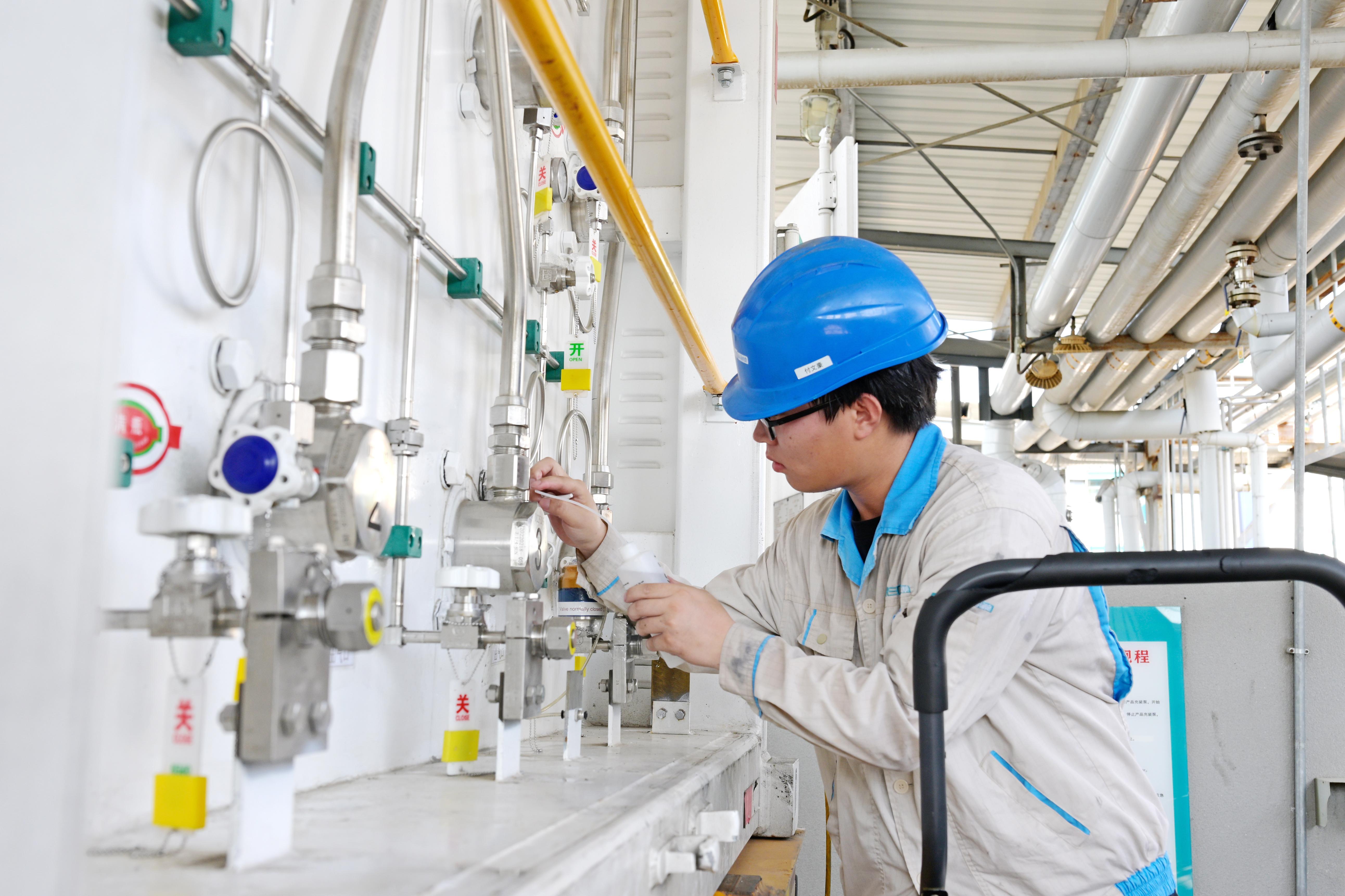 8月19日,安徽全椒經濟開發(fā)區(qū)電子新材料產業(yè)園內,全椒南大光電材料有限公司(以下簡稱南大光電)的中控室里,顯示屏“矩陣”實時跳動著生產數(shù)據(jù),工作人員通過電腦精準把控生產流程。