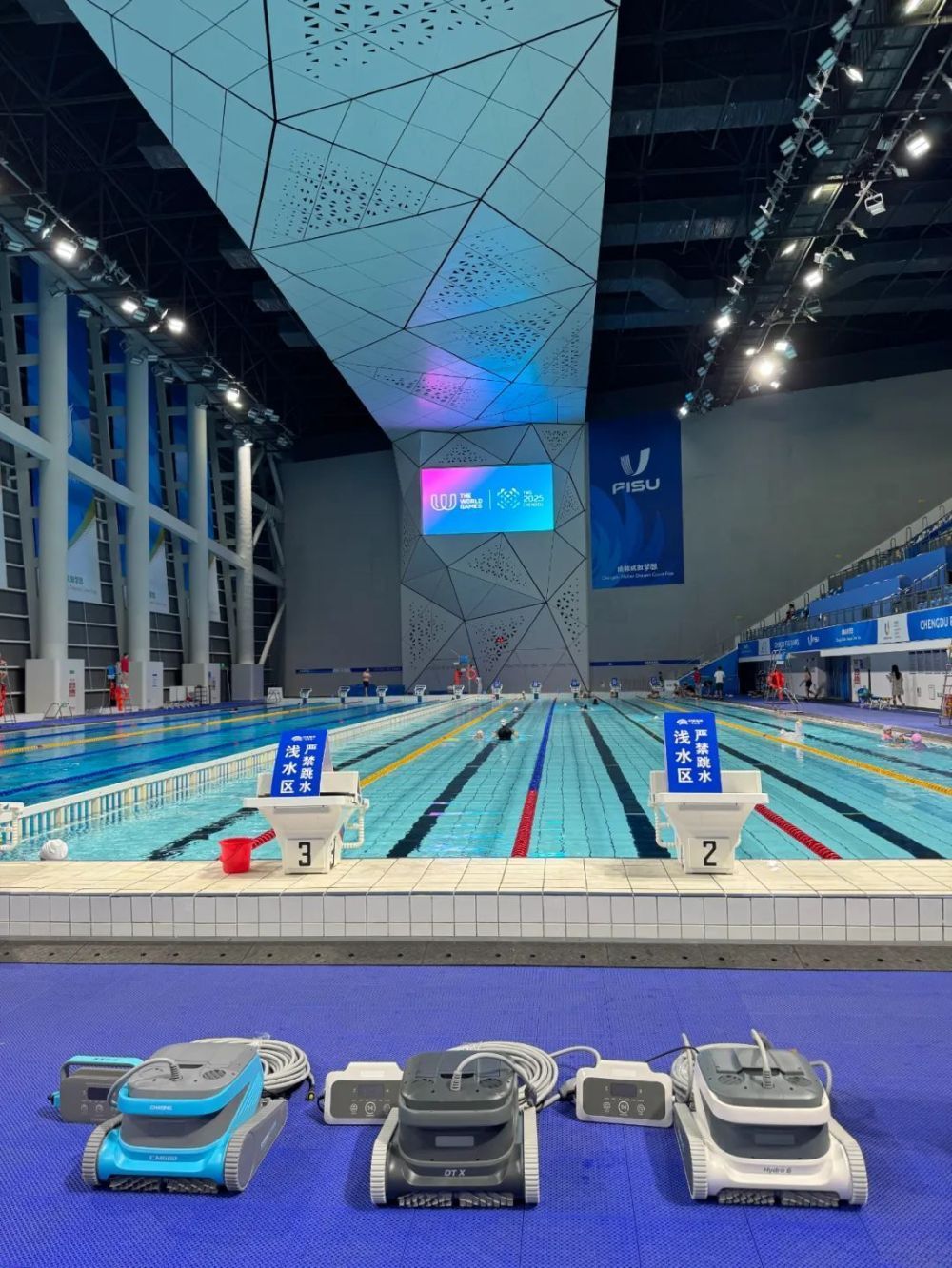 13日,世運會皮艇球項目在簡陽文體中心游泳館開賽,與運動員們一同出現(xiàn)在泳池里的還有幾位特殊的“清潔工”。據(jù)場館工作人員介紹,賽事期間場館投入了泳池清潔機器人設備,完成對泳池的日常維護及清潔任務。
