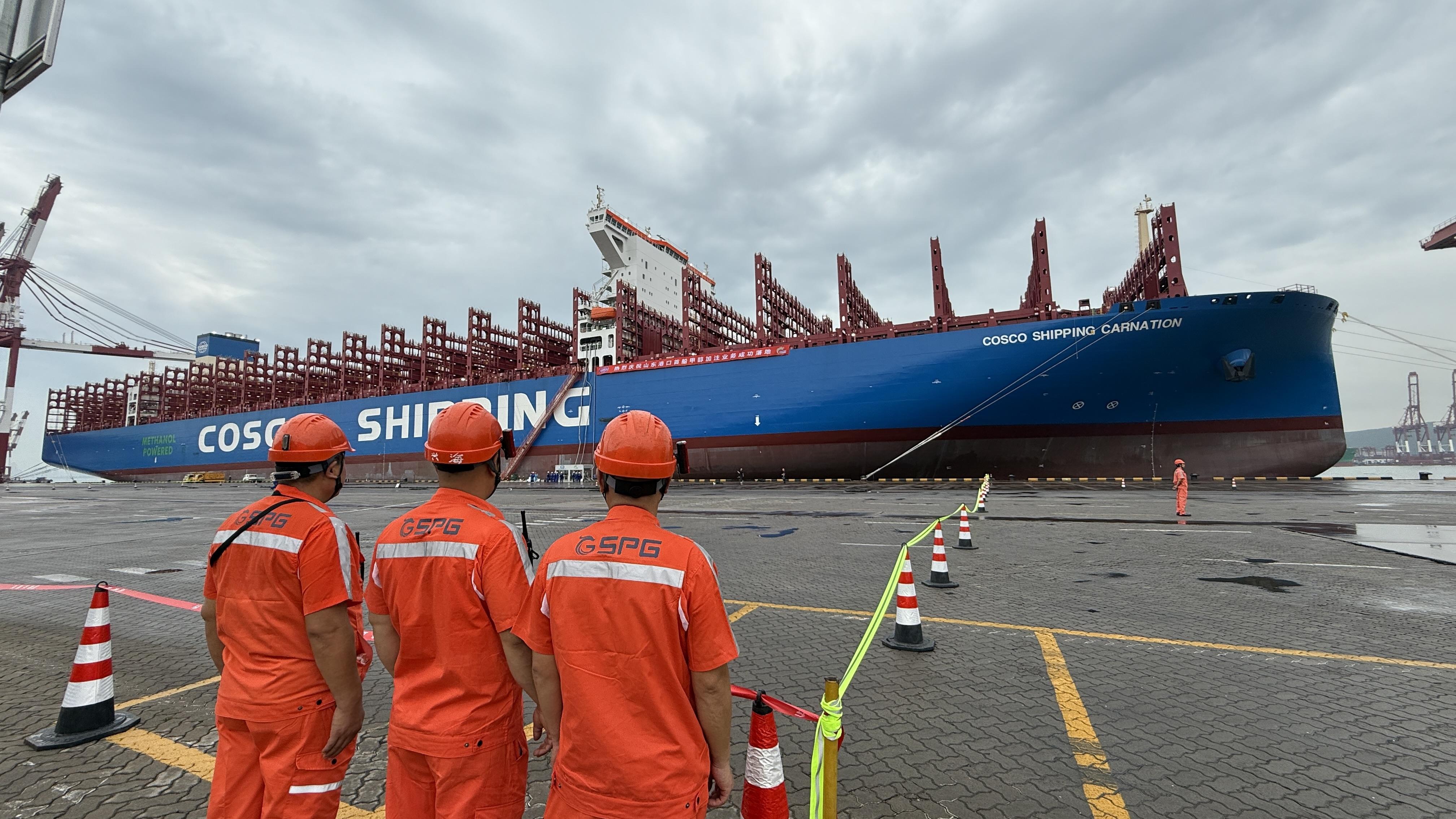 8月14日,“中遠海運康乃馨”輪在山東港口青島港前灣港區(qū)順利完成210噸甲醇加注作業(yè),這是青島港成功落地的首單船用甲醇加注業(yè)務。