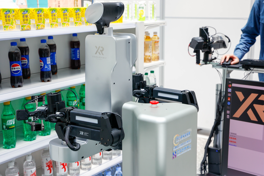 近日,天府絳溪實驗室機(jī)器人訓(xùn)練技術(shù)創(chuàng)新中心零售場景臨時訓(xùn)練場正式啟用。在該實驗室打造的“未來便利店”中,兩臺不同形態(tài)的機(jī)器人正開展作業(yè)實訓(xùn),與此同時,技術(shù)人員佩戴夾爪在貨架前進(jìn)行“無本體”數(shù)據(jù)采集,每一個動作都被高精度傳感器實時記錄,為AI訓(xùn)練積累關(guān)鍵行為數(shù)據(jù)。