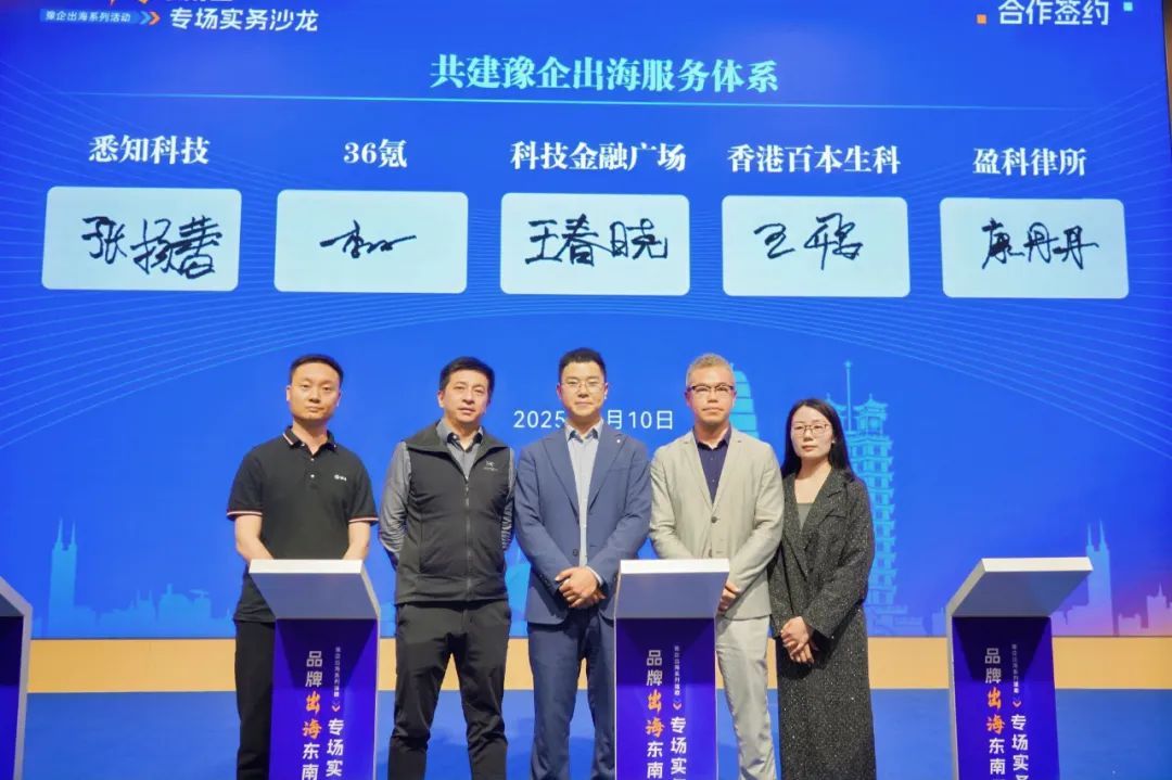 在活動(dòng)現(xiàn)場(chǎng),鄭州科技金融廣場(chǎng)與36氪簽約共建出海企業(yè)新加坡、迪拜服務(wù)站,同時(shí)還與36氪、悉知科技、香港百本生科、盈科律所一同簽約共建豫企出海服務(wù)體系。對(duì)此,王春曉表示,希望通過(guò)服務(wù)站鄭州高新區(qū)企業(yè)可以更快捷地了解新加坡及東南亞地區(qū)、中東地區(qū)等市場(chǎng)動(dòng)態(tài)、政策法規(guī)和人才流動(dòng)趨勢(shì)。同時(shí)服務(wù)站還將為高新區(qū)企業(yè)提供產(chǎn)品展示、商務(wù)對(duì)接、投資咨詢、法律支持等全方位服務(wù),助力企業(yè)在海外市場(chǎng)穩(wěn)健發(fā)展。