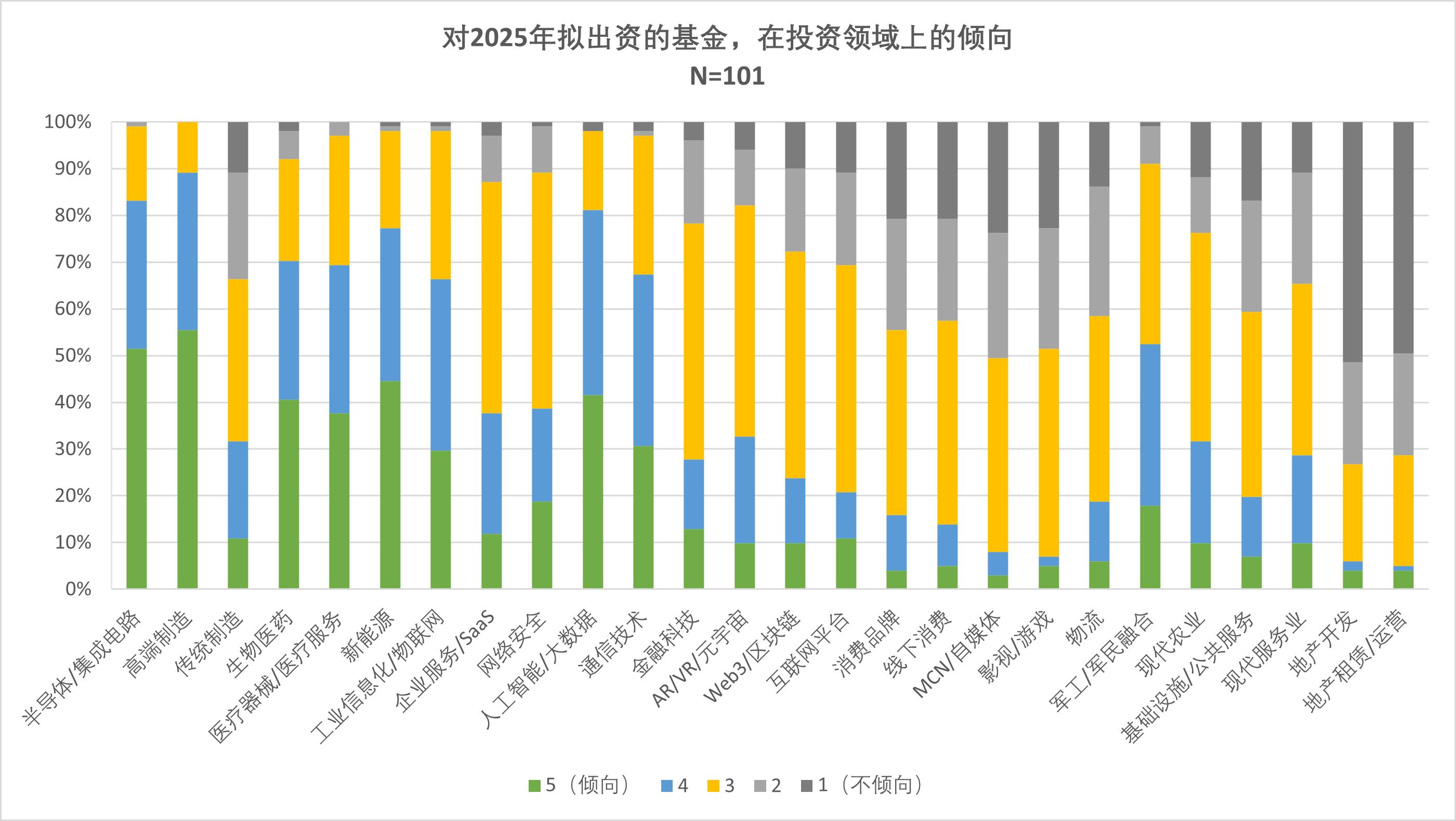 調(diào)研結(jié)果顯示,早期創(chuàng)投基金(天使/VC)、私募股權(quán)基金及政府引導(dǎo)基金最受青睞,市場化內(nèi)資機(jī)構(gòu)和本地國資背景GP更受信任,產(chǎn)業(yè)資本+政府資金的混合LP結(jié)構(gòu)更受偏好,這顯示出資源協(xié)同價(jià)值高于單純財(cái)務(wù)投資。半導(dǎo)體、高端制造、生物醫(yī)藥等“卡脖子”領(lǐng)域占據(jù)絕對(duì)主導(dǎo),而消費(fèi)、文娛等周期敏感型行業(yè)被普遍回避,反映出LP對(duì)政策導(dǎo)向與產(chǎn)業(yè)鏈安全的強(qiáng)敏感性。