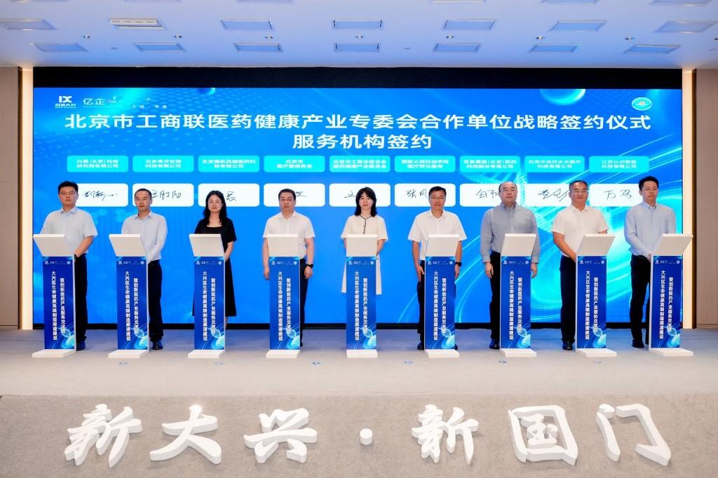 會(huì)議現(xiàn)場(chǎng),大興區(qū)投資促進(jìn)服務(wù)中心、大興區(qū)新興產(chǎn)業(yè)促進(jìn)服務(wù)中心、大興區(qū)工商聯(lián)、大興區(qū)天宮院街道辦事處、中關(guān)村科技園區(qū)大興生物醫(yī)藥產(chǎn)業(yè)基地管委會(huì)等5家單位與北京市工商聯(lián)醫(yī)藥健康產(chǎn)業(yè)專委會(huì)簽署戰(zhàn)略合作協(xié)議,將共同推動(dòng)科技成果轉(zhuǎn)化平臺(tái)建設(shè),促進(jìn)CRO/CDMO等科技服務(wù)業(yè)集聚發(fā)展。