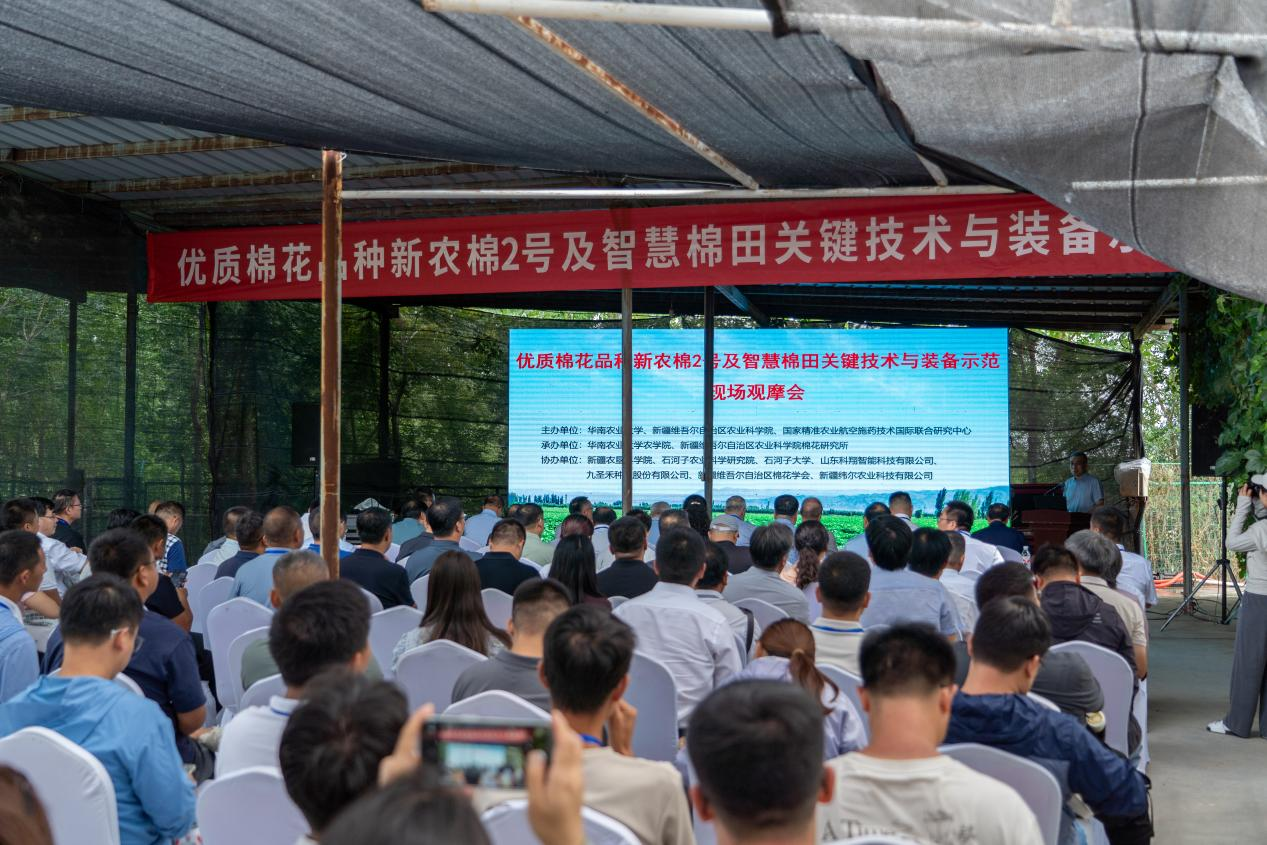 日前,一場聚焦棉花產(chǎn)業(yè)高質(zhì)量發(fā)展的科技盛會(huì)——由華南農(nóng)業(yè)大學(xué)、新疆維吾爾自治區(qū)農(nóng)業(yè)科學(xué)院、國家精準(zhǔn)農(nóng)業(yè)航空施藥技術(shù)國際聯(lián)合研究中心聯(lián)合主辦的“優(yōu)質(zhì)棉花品種新農(nóng)棉2號(hào)及智慧棉田關(guān)鍵技術(shù)與裝備示范”現(xiàn)場觀摩會(huì)在這里舉行。