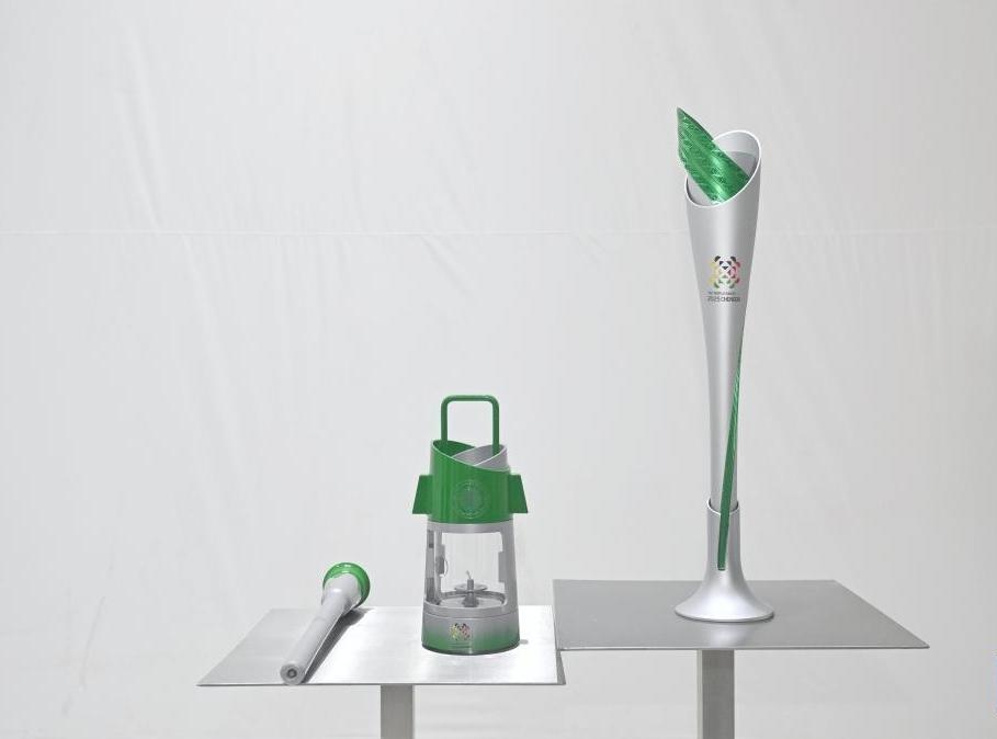 當日,成都世運會火炬?zhèn)鬟f系列裝置(火炬“竹夢”、火種燈、采火棒、采火器、火種盆等)亮相。