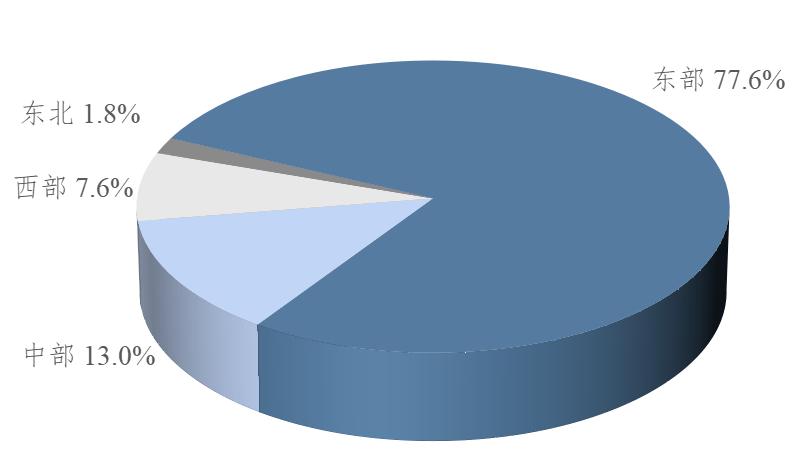 從地域分布來看,東部地區(qū)的創(chuàng)新型企業(yè)數(shù)量最多,共有388家,占比77.6%;中部地區(qū)65家,占比13%;西部地區(qū)38家,占比7.6%;東北地區(qū)9家,占比1.8%??梢钥闯?,我國企業(yè)科技創(chuàng)新發(fā)展區(qū)域的不均衡現(xiàn)象突出,東部地區(qū)企業(yè)的創(chuàng)新活動更為活躍,中西部和東北地區(qū)科技創(chuàng)新活躍程度相對不足。