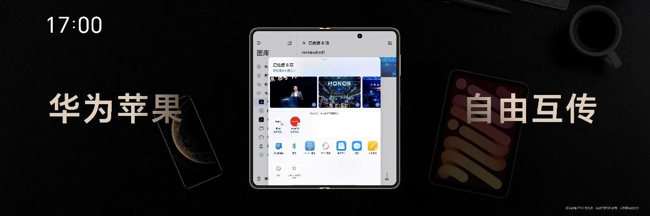 榮耀Magic V5以全生態(tài)設(shè)備互通互聯(lián)技術(shù),突破智能終端壁壘。Android、蘋果、Windows,榮耀Magic V5均可無縫連接,首次實(shí)現(xiàn)全品牌手機(jī)、PC、平板、手表、耳機(jī)設(shè)備的文件互傳、數(shù)據(jù)同步與跨端協(xié)作等高效聯(lián)動,“誰都能連,傳啥都快”,開啟萬物互聯(lián)AI新體驗(yàn)。
