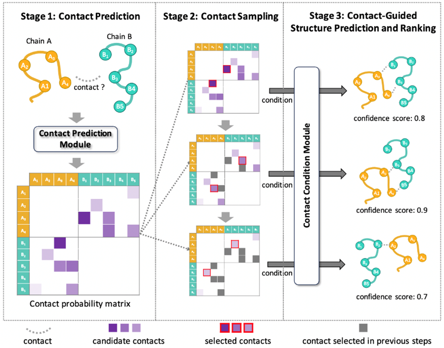生命活動依賴于蛋白質(zhì)與化合物、RNA、抗原抗體等生物分子間的精準(zhǔn)結(jié)合,解析分子間的三維結(jié)構(gòu)是藥物設(shè)計、疫苗研發(fā)等場景的核心。數(shù)年來,蛋白質(zhì)結(jié)構(gòu)預(yù)測始終是生命科學(xué)領(lǐng)域的重大機(jī)遇和挑戰(zhàn)。盡管國內(nèi)外已有多款生物分子結(jié)構(gòu)預(yù)測模型能夠較為準(zhǔn)確地預(yù)測單個蛋白質(zhì)和復(fù)合體間的結(jié)構(gòu),但像AlphaFold3這類模型,大多依賴大規(guī)模盲采的傳統(tǒng)方法,即通過“廣撒網(wǎng)”生成海量結(jié)構(gòu),再從中篩選最優(yōu)解,面對缺乏共進(jìn)化信息的新型分子或復(fù)合物的結(jié)合模式未見過的情況時,常因方向不明導(dǎo)致冗余采樣與預(yù)測失敗,預(yù)測效率低、精度不足。