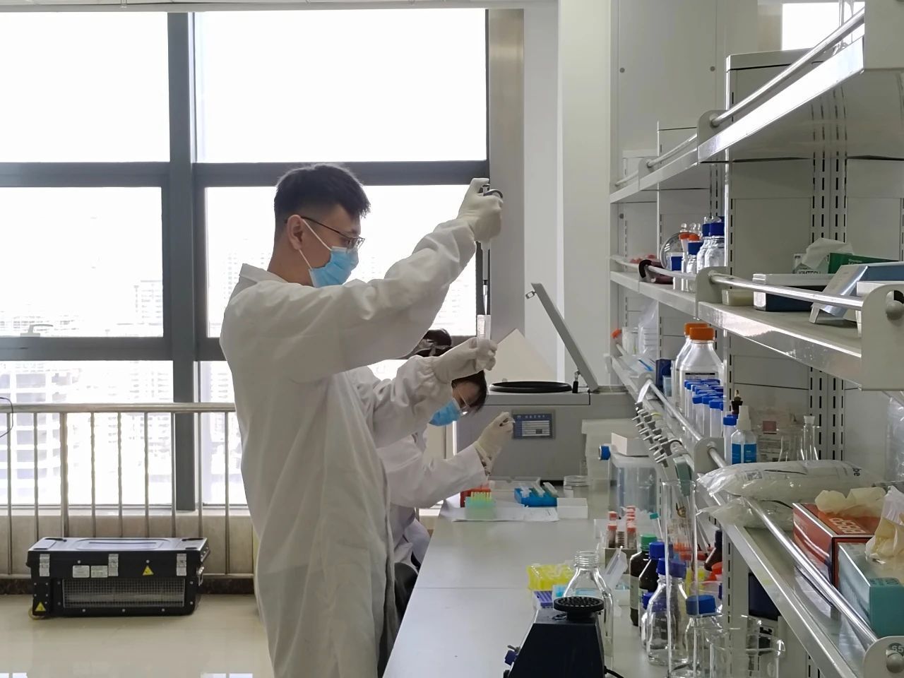 近日,在山東國(guó)倉(cāng)健生物科技有限公司實(shí)驗(yàn)田里,科研人員正蹲在田間,用便攜式檢測(cè)儀記錄著農(nóng)作物的實(shí)驗(yàn)數(shù)據(jù)。