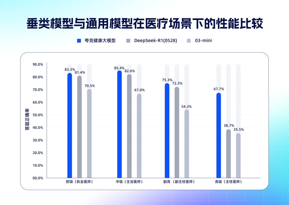 7月23日,夸克健康大模型成功通過(guò)中國(guó)12門(mén)核心學(xué)科的主任醫(yī)師筆試評(píng)測(cè),成為國(guó)內(nèi)首個(gè)完成這一挑戰(zhàn)的大模型。目前,“主任級(jí) AI 醫(yī)生”能力已全面集成至夸克的AI搜索中,用戶(hù)在查詢(xún)健康問(wèn)題時(shí),選擇深度搜索即可調(diào)用。