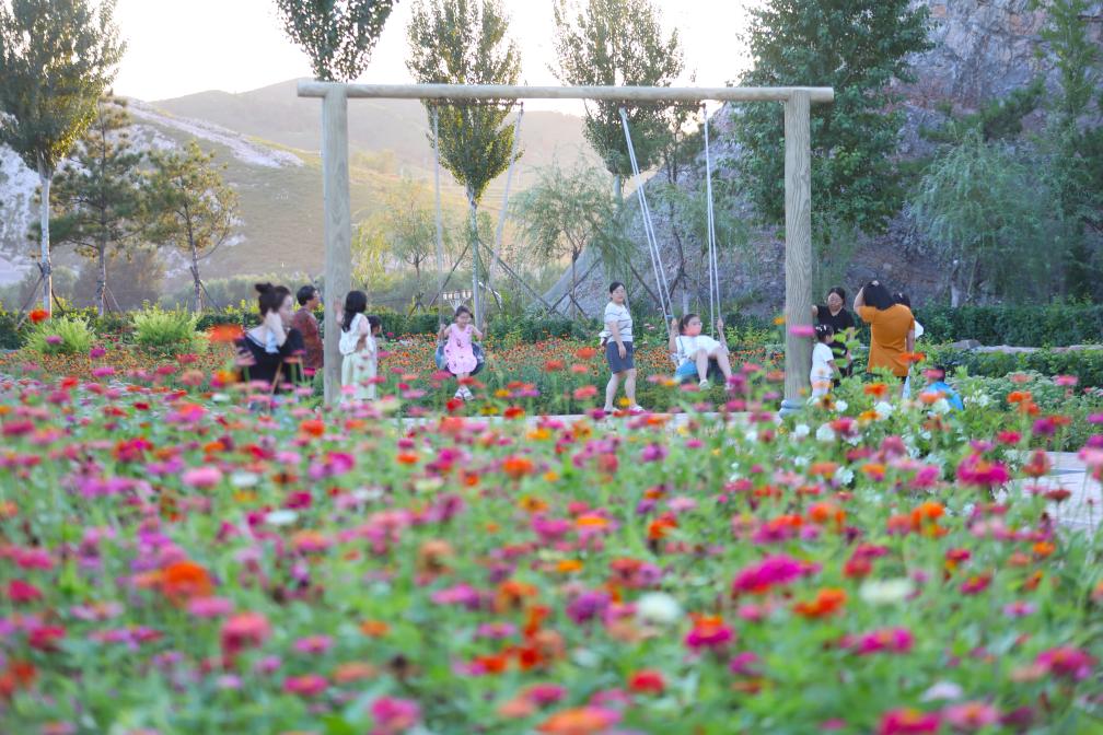 市民在由采石場(chǎng)修復(fù)治理和綠化建設(shè)而成的遼寧北票市山體公園休閑游玩(2024年8月8日攝)。新華社記者 楊青 攝