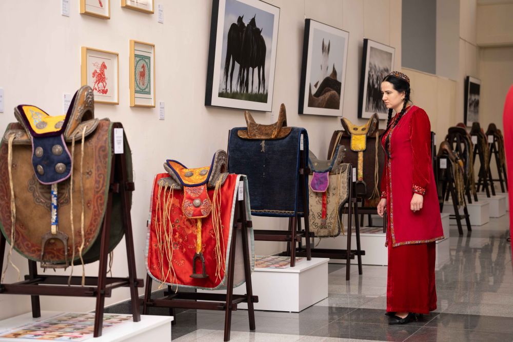 2025年6月3日,一名女子在土庫曼斯坦首都阿什哈巴德參觀“騏驥馳騁——2025中國馬文化展”。新華社發(fā)