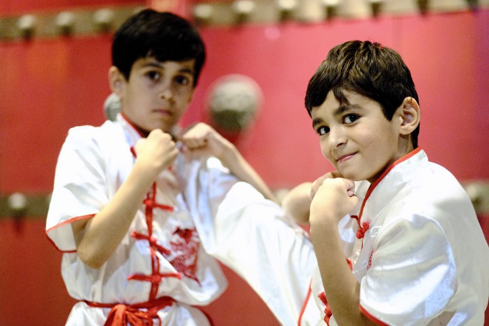2024年6月11日,在塔吉克斯坦首都杜尚別,愛好中國武術(shù)的當(dāng)?shù)貎和瘏⒓铀怂固姑褡宕髮W(xué)孔子學(xué)院的武術(shù)表演排練。新華社記者 鄭開君 攝