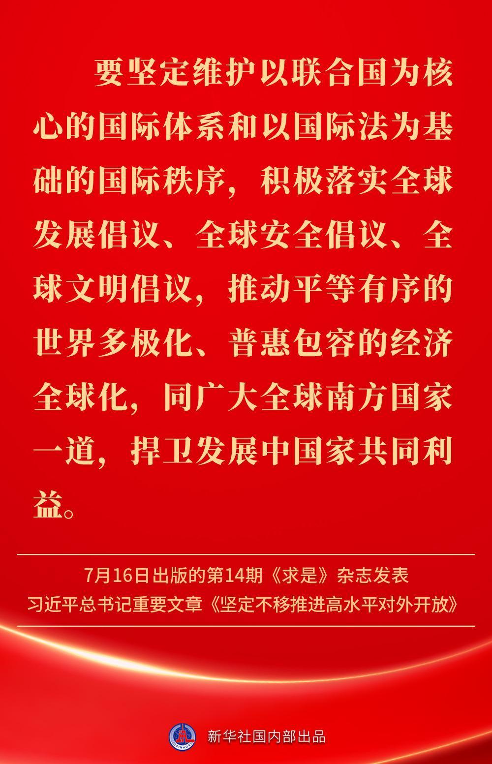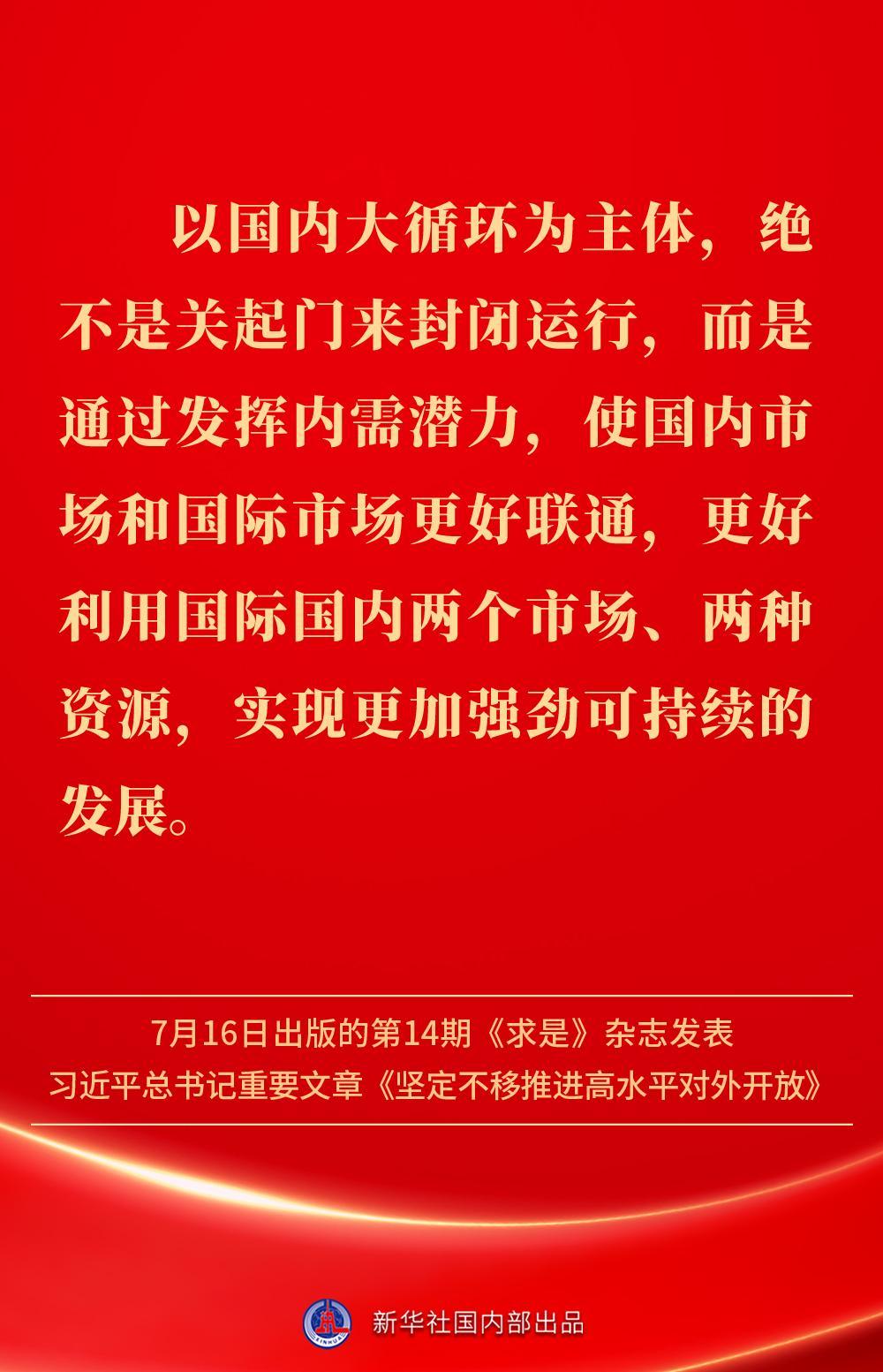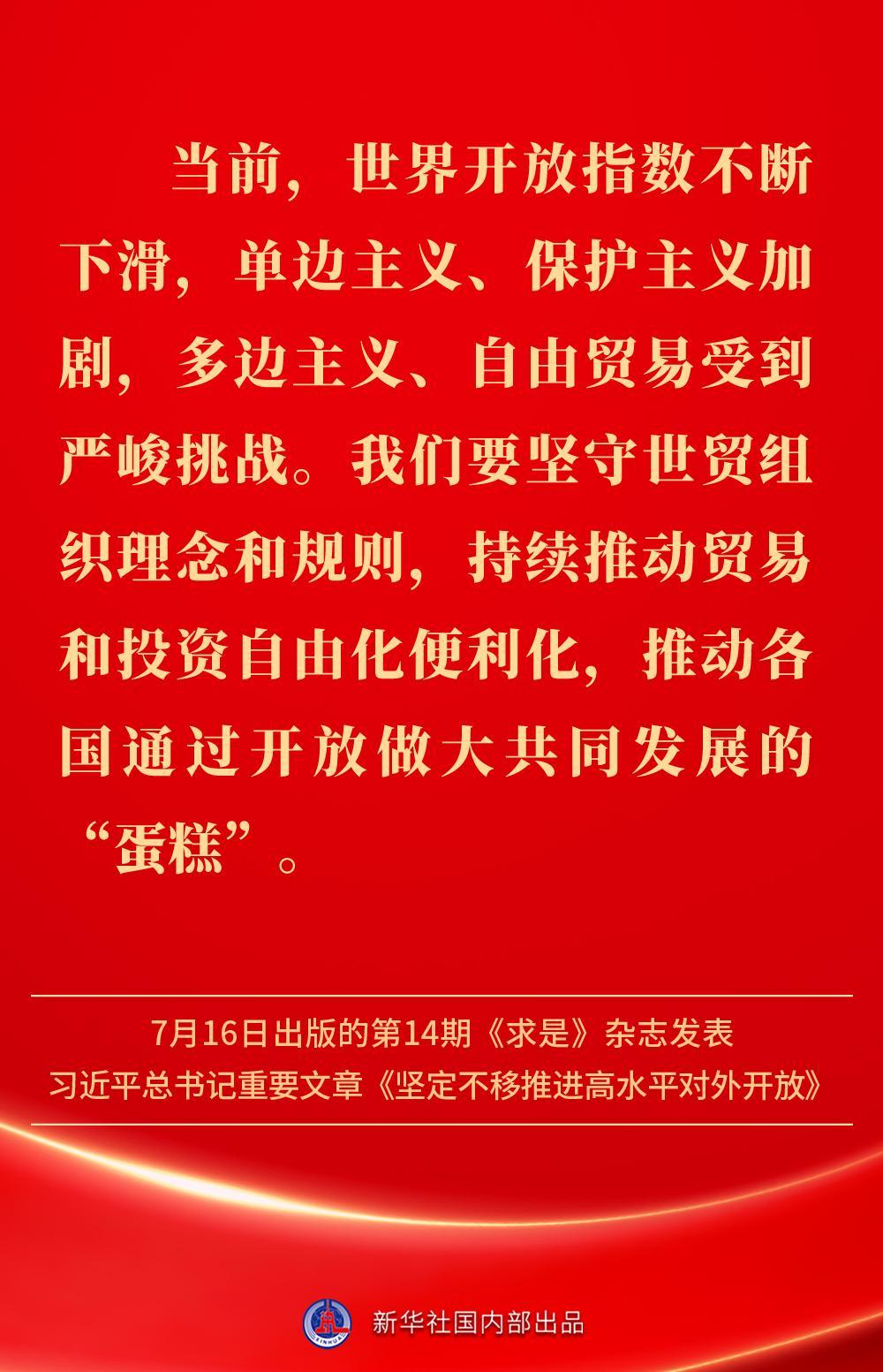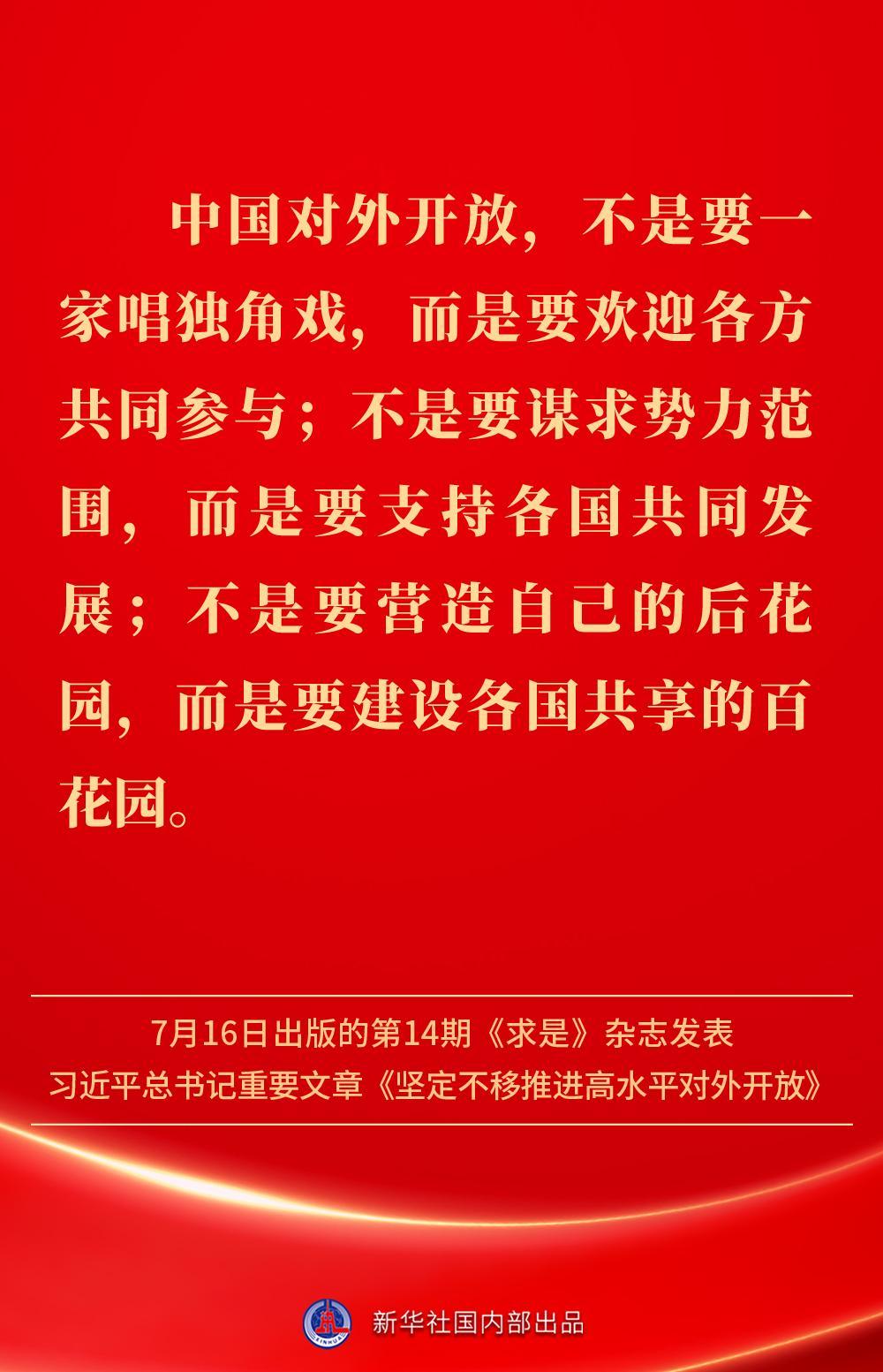7月16日出版的第14期《求是》雜志發(fā)表習(xí)近平總書記重要文章《堅定不移推進高水平對外開放》。文章強調(diào),中國的發(fā)展離不開世界,世界的繁榮也需要中國。不斷擴大對外開放、提高對外開放水平,以開放促改革、促發(fā)展,是我國發(fā)展不斷取得新成就的重要法寶。堅定不移推進高水平對外開放,總書記這樣闡明——