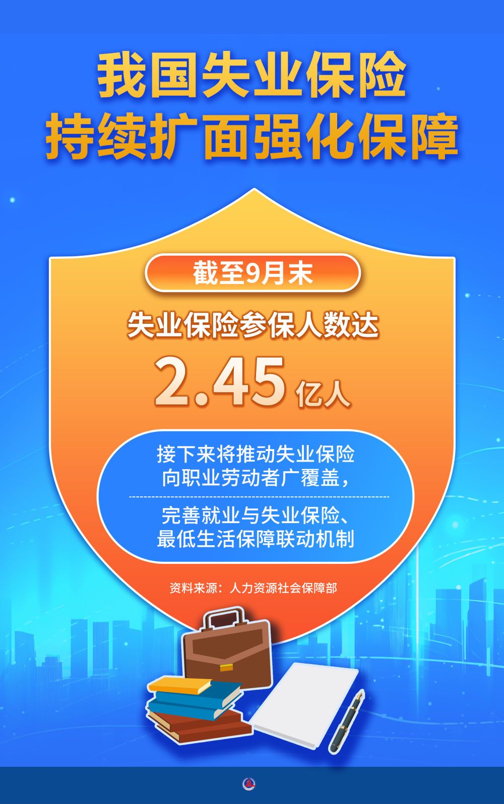 近年來,我國失業(yè)保險持續(xù)擴(kuò)大覆蓋面,并不斷提高保障水平。截至2024年9月末,失業(yè)保險參保人數(shù)達(dá)2.45億人。