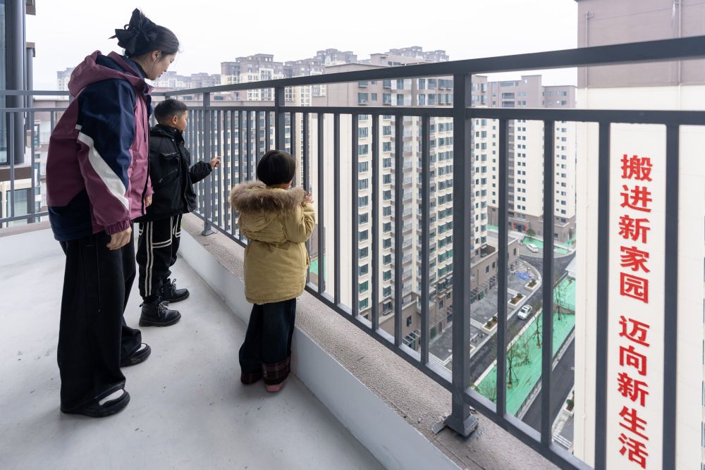 2025年春節(jié)前夕,云南省昭通市鎮(zhèn)雄縣“1·22”山體滑坡受災(zāi)群眾陸續(xù)搬入位于鎮(zhèn)雄縣城的雄俊園小區(qū)安置點(diǎn)的新家,開啟新生活。這是2025年1月16日,一位母親帶領(lǐng)孩子在新家陽臺上俯看小區(qū)。2024年1月22日,云南省昭通市鎮(zhèn)雄縣發(fā)生山體滑坡,造成人員傷亡和財產(chǎn)損失。災(zāi)害發(fā)生后,鎮(zhèn)雄縣及時制定受災(zāi)群眾過渡期安置方案,多舉措妥善安置受災(zāi)群眾。