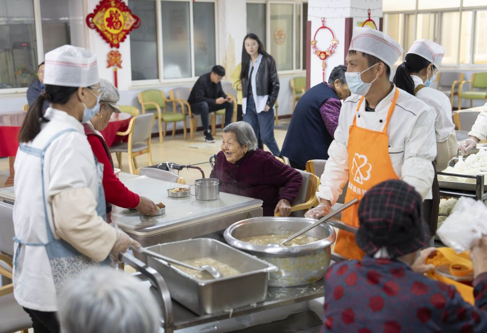 2024年11月13日,山東省日照市中盛幸福苑的工作人員為老人準(zhǔn)備午餐。近年來,日照市立足提升居家社區(qū)養(yǎng)老服務(wù)供給,支持社會力量參與養(yǎng)老服務(wù),積極探索醫(yī)康養(yǎng)相結(jié)合的養(yǎng)老服務(wù)格局等,滿足老年人多方面養(yǎng)老服務(wù)需求,多措并舉完善養(yǎng)老體系。