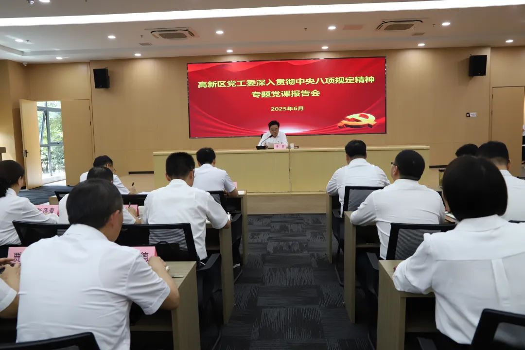 近日,淮南高新區(qū)深入貫徹中央八項規(guī)定精神學(xué)習(xí)教育黨課報告會召開?;茨细咝聟^(qū)黨工委書記、管委會主任李群作黨課報告,他表示,要增強(qiáng)落實中央八項規(guī)定精神的政治自覺、思想自覺和行動自覺,確保作風(fēng)建設(shè)各項任務(wù)落到實處,推動全面從嚴(yán)治黨向縱深發(fā)展,為高新區(qū)高質(zhì)量發(fā)展提供堅強(qiáng)紀(jì)律保障。