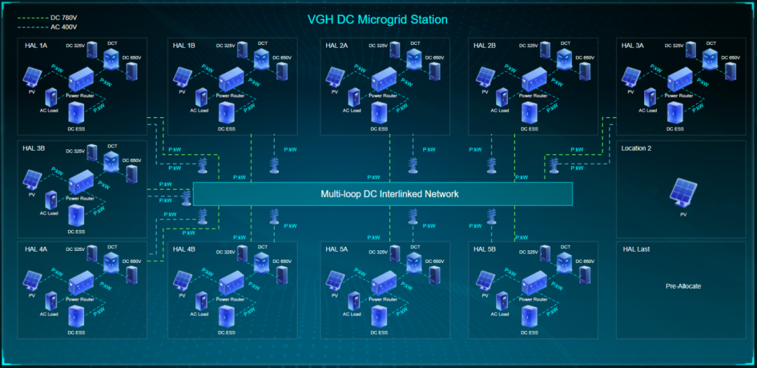 該項目直面?zhèn)鹘y(tǒng)交流供電模式笨重低效這一難題,以突破性技術(shù)構(gòu)建了一套前所未有的綠色供電方案,如全直流多環(huán)網(wǎng)組網(wǎng),大幅降低能量轉(zhuǎn)換損耗,光儲并/離網(wǎng)直流直供,直接供給建筑內(nèi)的直流負載,以及電能路由器集群智能控制(核心突破)、內(nèi)部自洽(微網(wǎng)內(nèi))、外部互濟(微網(wǎng)間)等,可從容應(yīng)對復雜多變的運行工況。