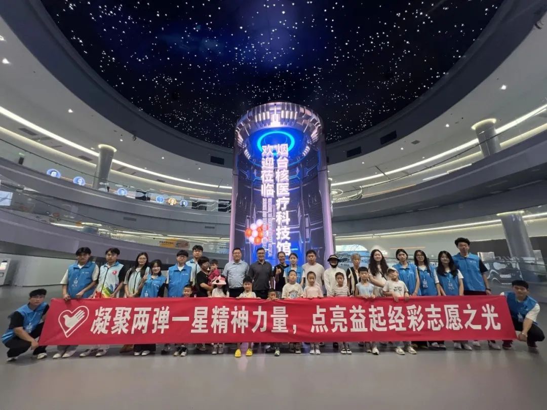 在煙臺核醫(yī)療科技館“從‘核’而來”展廳,講解員結(jié)合核醫(yī)療發(fā)展史講述了中國科學(xué)家如何發(fā)揚“兩彈一星”的科學(xué)精神,將核技術(shù)從國防領(lǐng)域延伸至民生健康;在“‘核’以致用”展廳里,社區(qū)工作人員和志愿者帶領(lǐng)孩子們用VR技術(shù)體驗3D影像生動呈現(xiàn)出來的放射性藥物作用的過程。通過實際體驗感受中國核醫(yī)療技術(shù)從“跟跑”到“并跑”的突破歷程;在“‘核’以未來”互動區(qū),本次研學(xué)活動特別設(shè)計“‘兩彈一星’精神接力賽”,孩子們通過團(tuán)隊協(xié)作完成DNA鏈射擊任務(wù),用行動詮釋“大力協(xié)同”的團(tuán)隊精神。