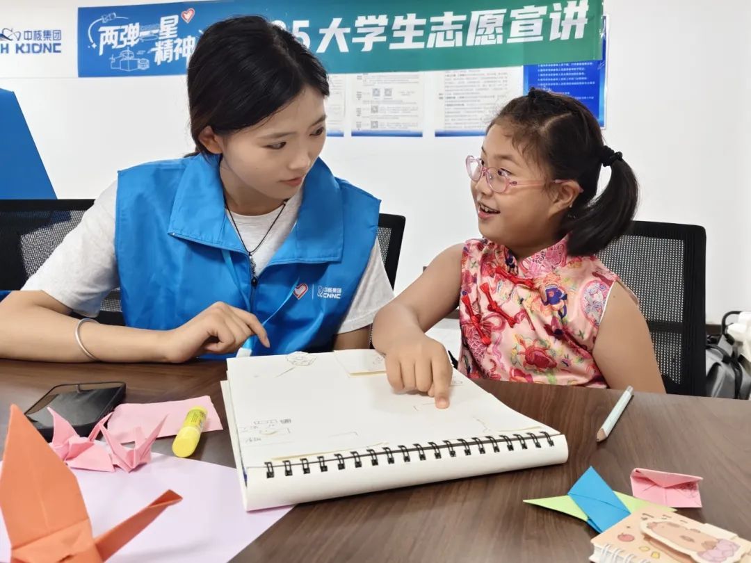 核能科學(xué)探秘課堂更是充滿了樂趣與挑戰(zhàn)。志愿者通過簡單易學(xué)的小手工、小游戲,讓孩子們理解其中蘊含的科學(xué)奧秘,孩子們臉上洋溢著好奇又興奮的笑容。孩子們紛紛說道:“之前在學(xué)校就很好奇的科學(xué)小游戲,現(xiàn)在通過夏令營,我對它有了更直觀、全面的認(rèn)識?!?/p>