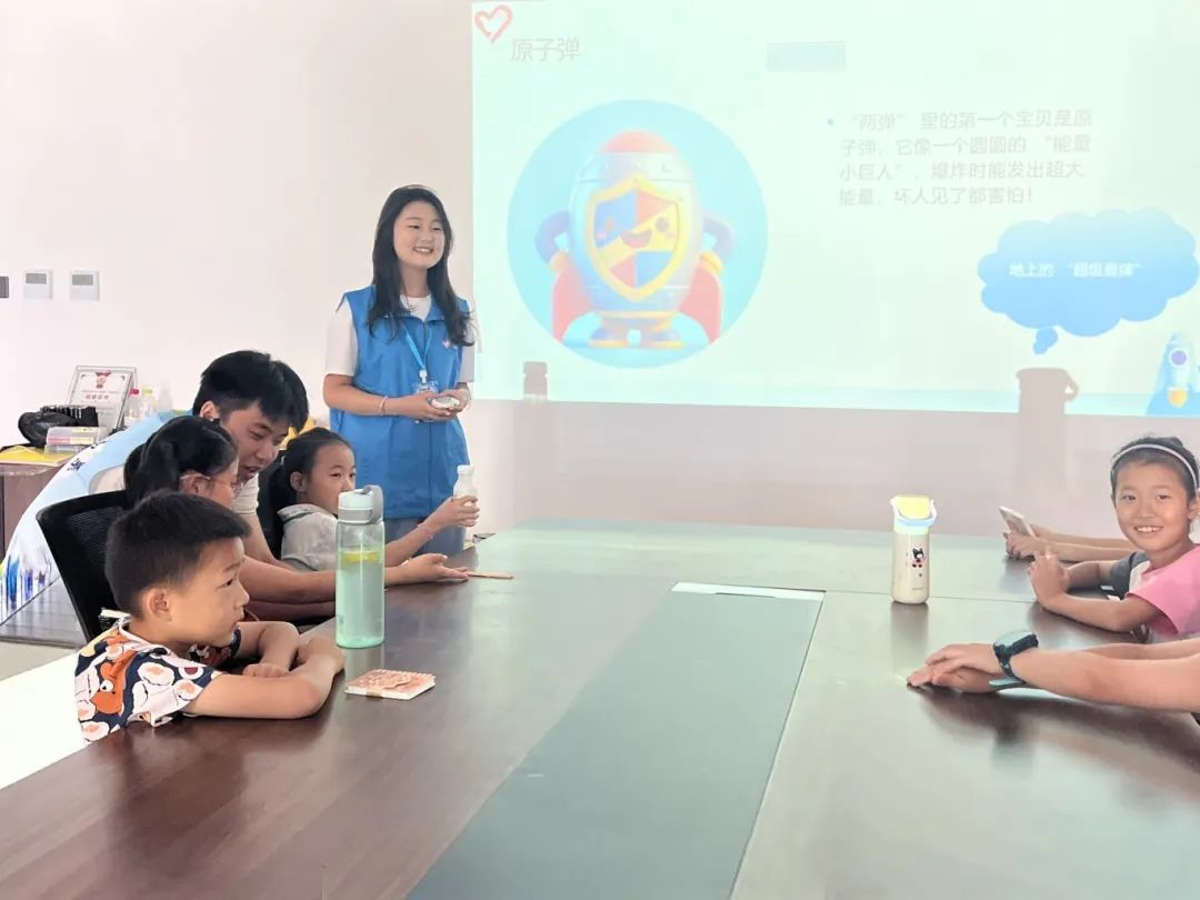 夏令營的課堂教學(xué)環(huán)節(jié)精彩紛呈,志愿者用通俗易懂的語言為轄區(qū)的孩子們打開了一扇通往科學(xué)世界和歷史深處的大門。他們把原子彈化作“能量小巨人”,用“爆米花炸開”的場景類比氫彈爆炸的強大威力;把“東方紅一號”比作“天上的唱歌小信使”,用“童言”識“童趣”揭開“兩彈一星”的神秘面紗。在“兩彈一星”歷史與精神課程上,志愿者通過生動的故事和珍貴的影像資料,將錢學(xué)森、鄧稼先等科學(xué)家們在艱苦條件下潛心研究、為國奉獻(xiàn)的事跡娓娓道來。
