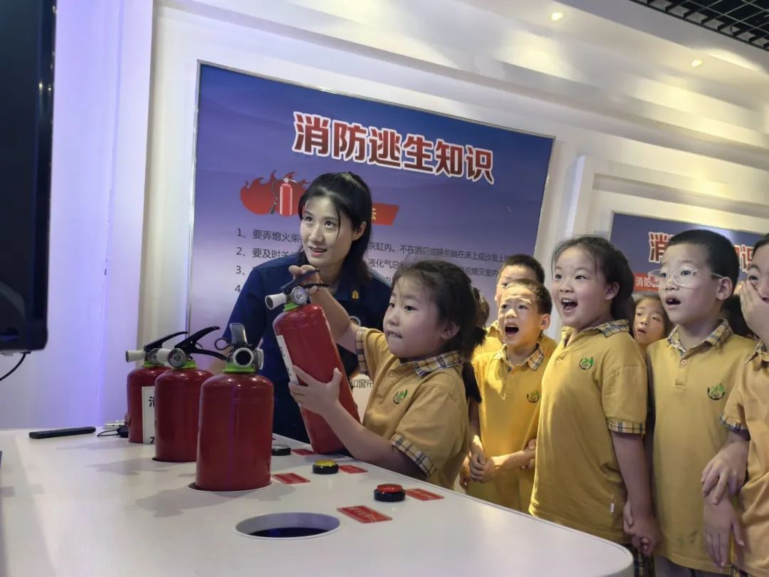 聚焦家庭與校園的隱患場景,講解員化身“安全導師”,引領孩子們開啟一場深度安全探索。通過剖析火災成因,詳細講述了自救逃生法則以及日常家庭火災預防的實用技巧。為了將抽象知識轉化為具體行動指南,講解員組織孩子們利用VR體驗系統(tǒng)、火災模擬系統(tǒng),“零距離”感受火場緊張氛圍,學習了滅火器“提拔握壓”的使用方法,理解初起火災撲救的關鍵。在火災逃生體驗區(qū),孩子們嚴格按照示范,捂住口鼻、彎腰前行,在模擬的“濃煙”與“黑暗”環(huán)境中,親身體驗并強化科學逃生的每一步。