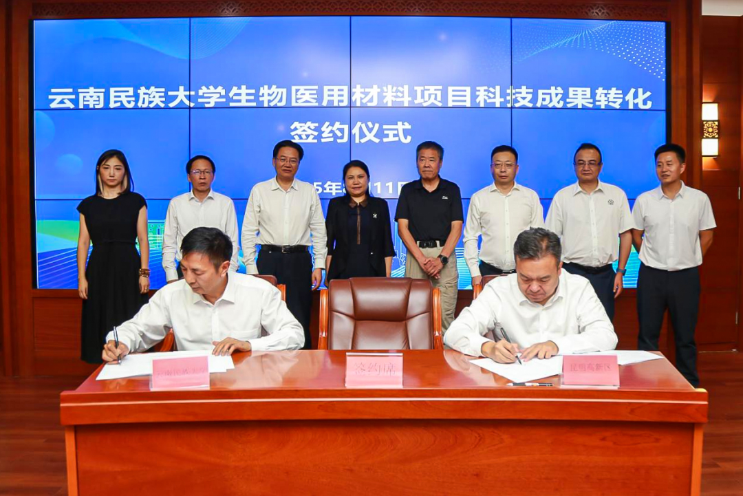 8月11日,昆明高新區(qū)與云南民族大學(xué)舉行生物醫(yī)用材料項目科技成果轉(zhuǎn)化簽約儀式。此次合作聚焦生物醫(yī)用材料領(lǐng)域,旨在通過政府引導(dǎo)、高校支撐、企業(yè)參與的模式,打通“產(chǎn)學(xué)研用”全鏈條,共同打造產(chǎn)學(xué)研協(xié)同創(chuàng)新平臺,推動科技創(chuàng)新與成果轉(zhuǎn)化,深化產(chǎn)教融合與校企協(xié)同發(fā)展,共同助力科研成果快速從實驗室走向產(chǎn)業(yè)市場。