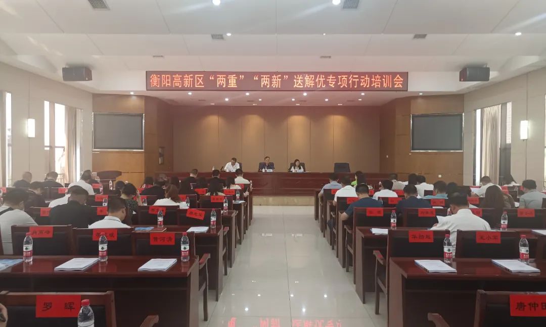 9月11日上午,衡陽(yáng)高新區(qū)組織召開(kāi)“兩重”“兩新”送解優(yōu)專項(xiàng)行動(dòng)工作培訓(xùn)會(huì)?!皟芍亍薄皟尚隆焙怅?yáng)高新區(qū)黨工委分管領(lǐng)導(dǎo)、推進(jìn)機(jī)制辦公室、4個(gè)專項(xiàng)行動(dòng)工作組、工作專班組長(zhǎng)及各成員單位聯(lián)絡(luò)員參訓(xùn)。