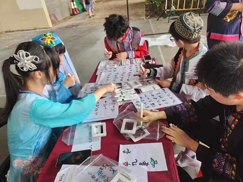 9月28日,在香港觀塘海濱公園,身穿民族服飾的青少年體驗(yàn)非遺文化。新華社發(fā)(受訪者供圖)