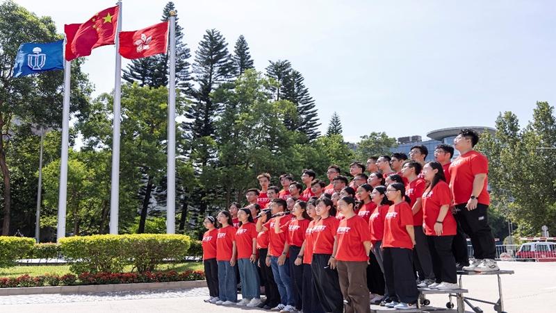 “中國紅”閃耀在全港青少年的心中。舉行國慶升旗儀式,近年來已成為香港眾多大中小學(xué)的慣例。在香港科技大學(xué),400余名師生在儀式后齊聲高唱《我和我的祖國》,2萬多人在線觀看并點(diǎn)贊。