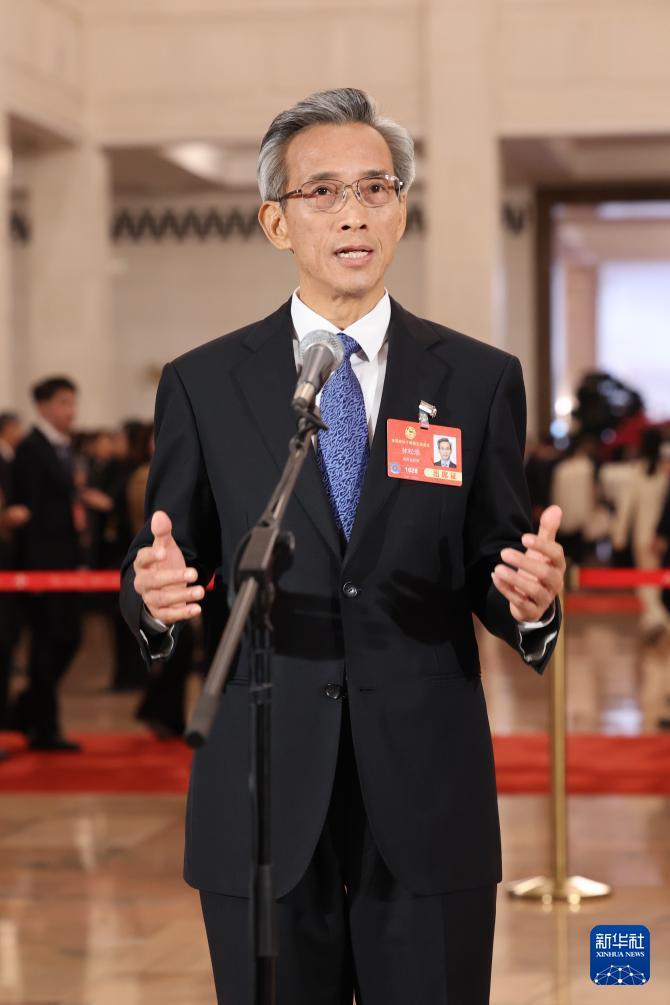 3月4日,全國政協十四屆三次會議首場“委員通道”集體采訪活動在北京人民大會堂舉行。這是全國政協委員林松添接受媒體采訪。
