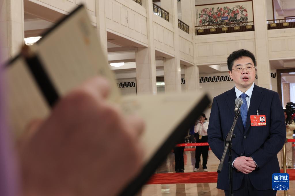 3月4日,全國政協十四屆三次會議首場“委員通道”集體采訪活動在北京人民大會堂舉行。這是全國政協委員嚴建兵接受媒體采訪。